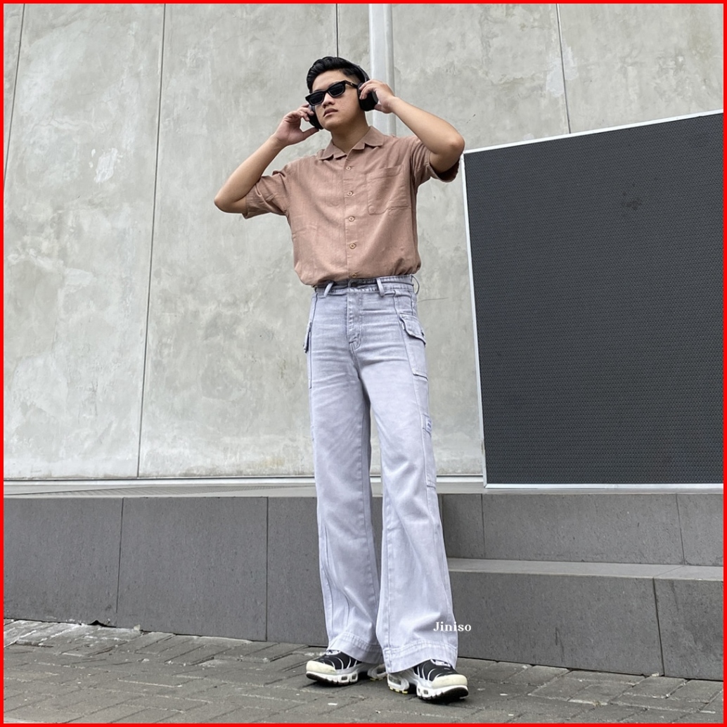 Jiniso Cargo Baggy Denim Jeans Pria 415