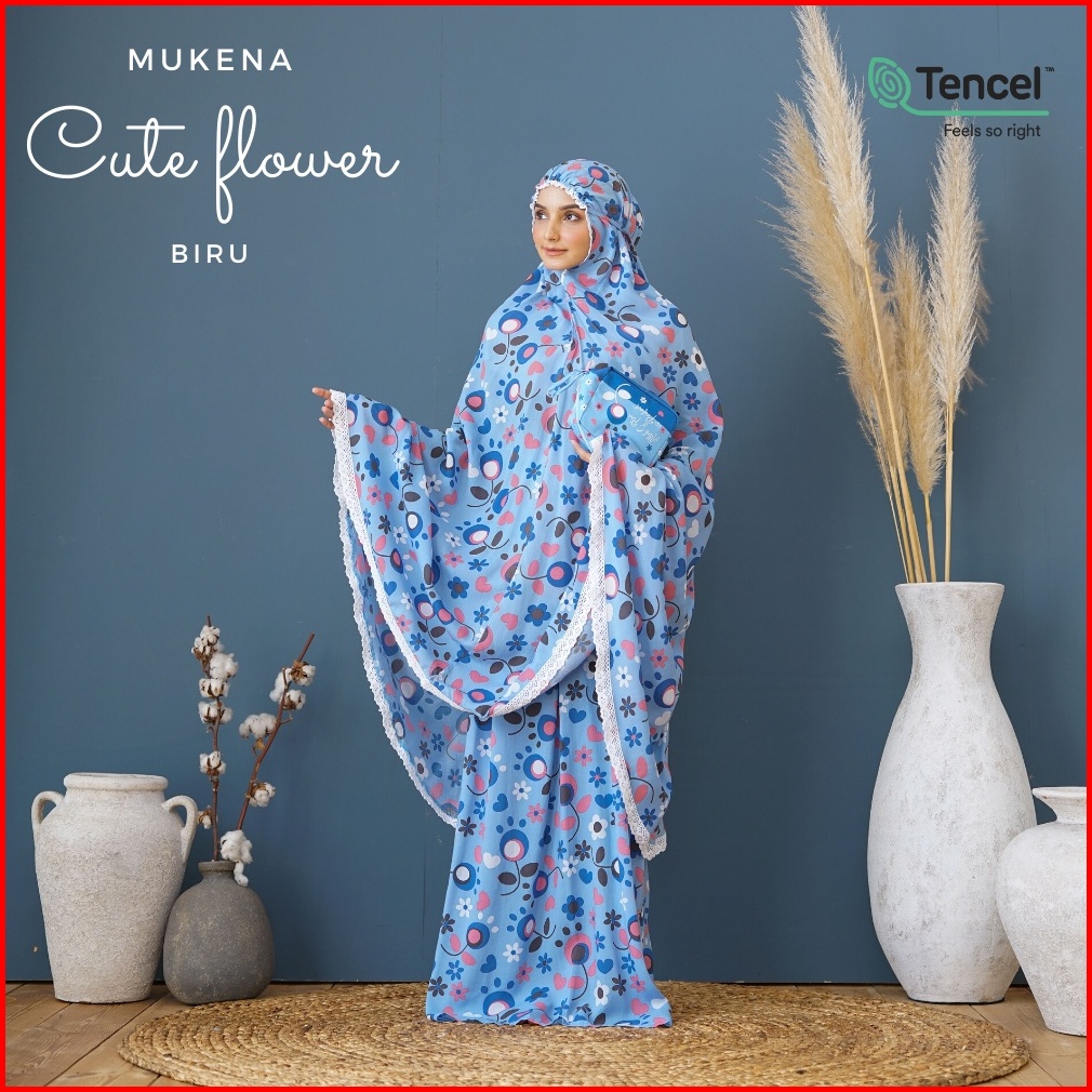 Belimukena Premium - Mukena Cute Flower Biru Free Tas Pouch Box