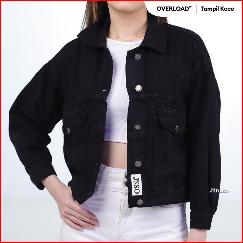 Jiniso Jaket Crop Jeans Oversize Vintage Pocket Black
