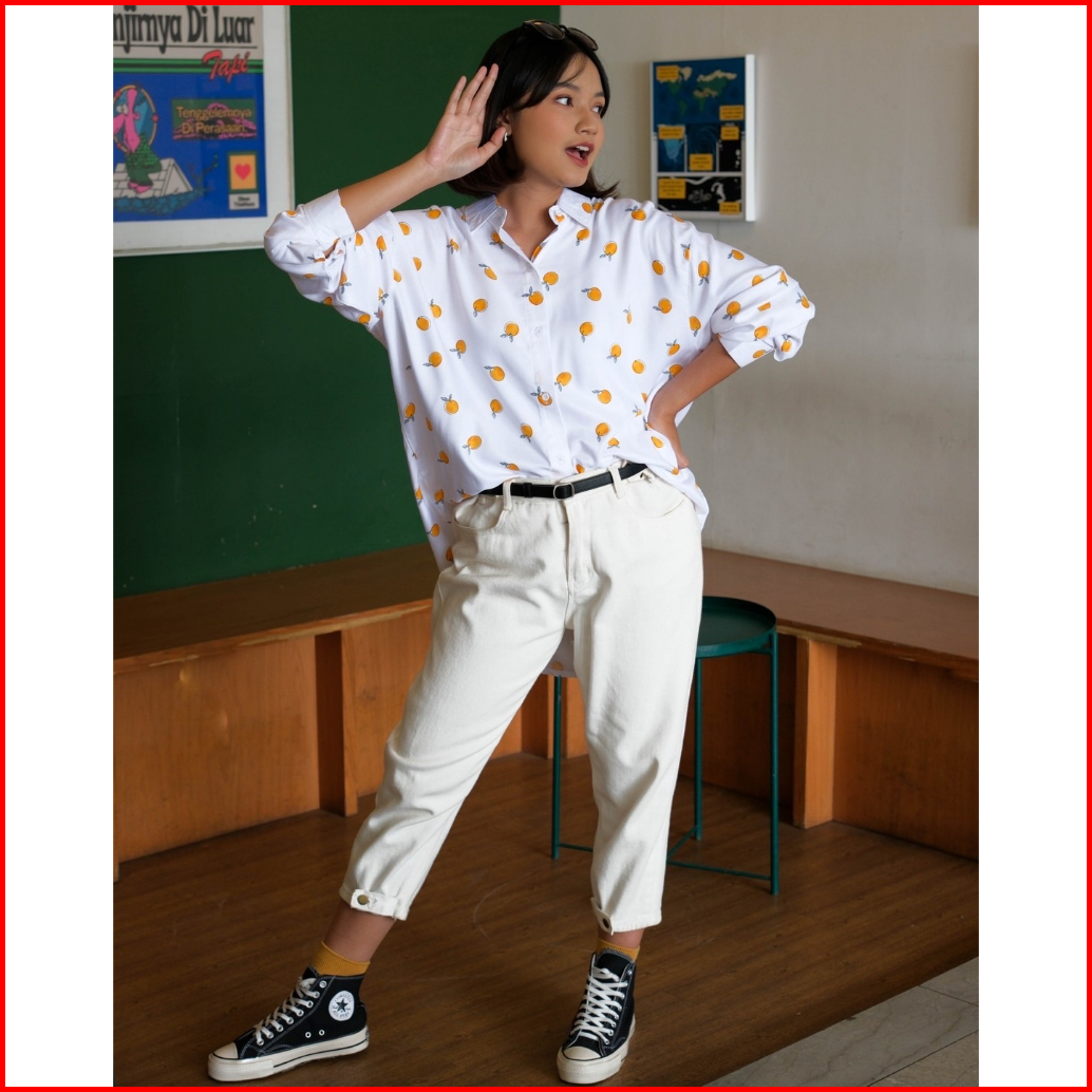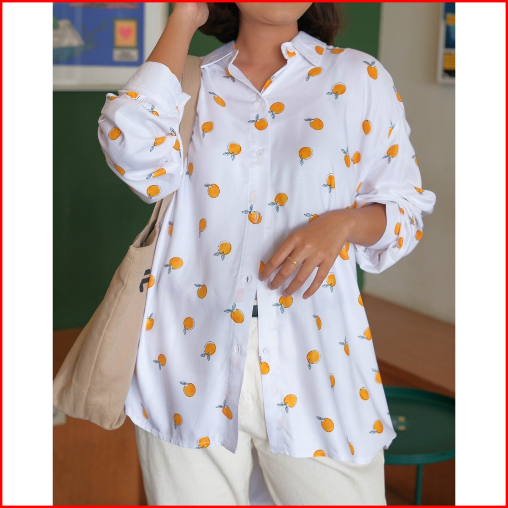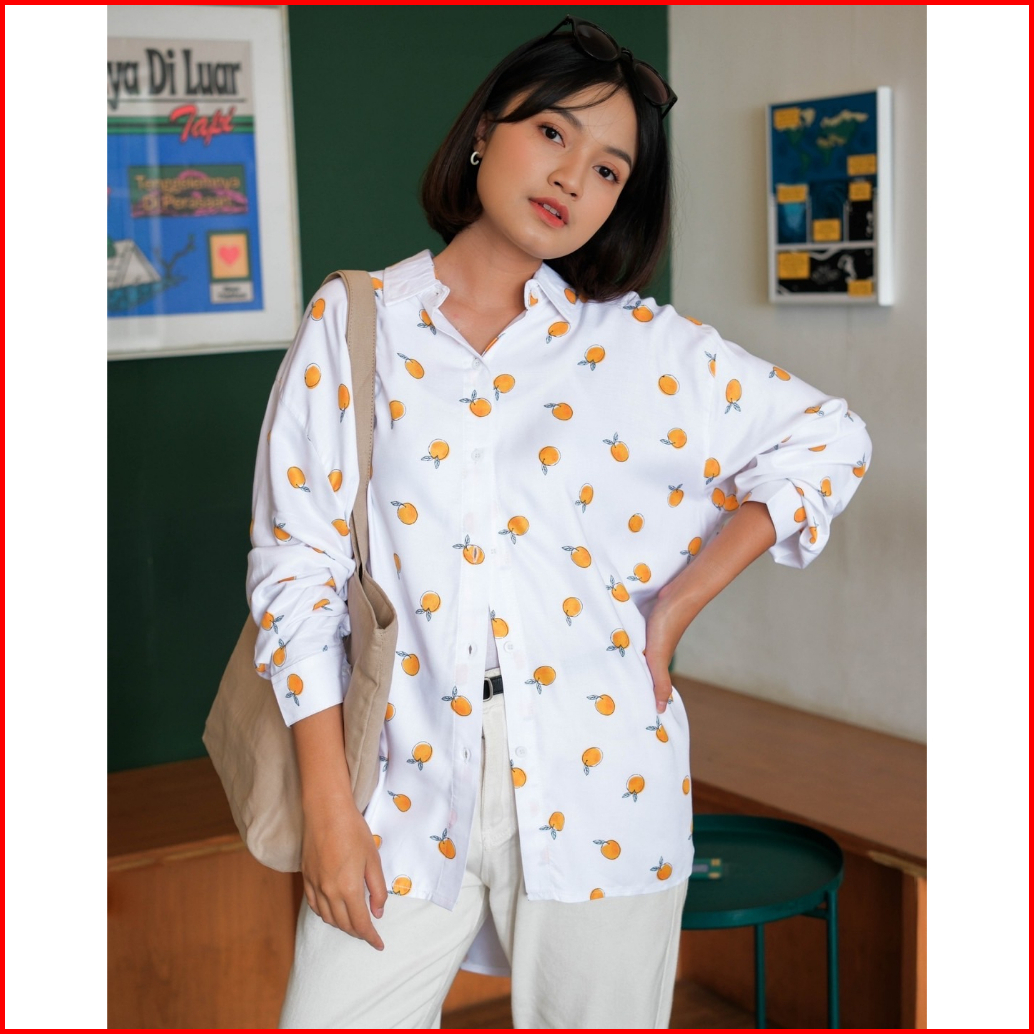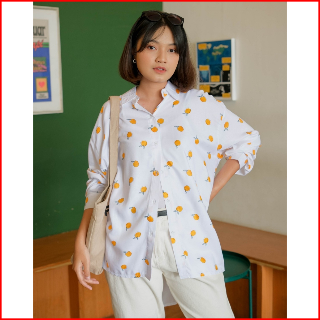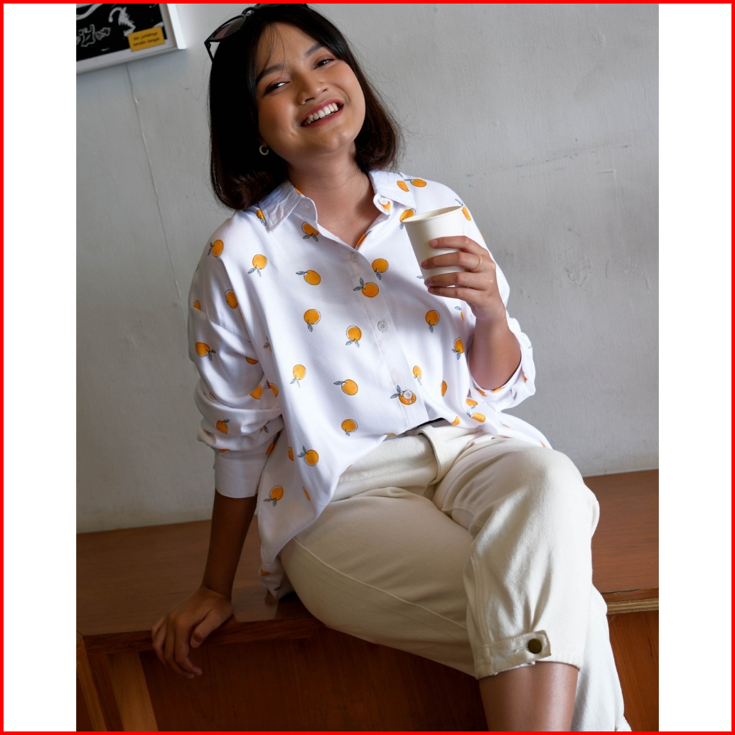Myrubylicious Orange Shirt Atasan Wanita Kemeja Motif