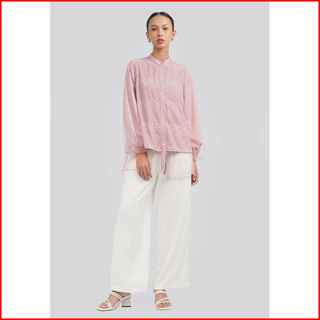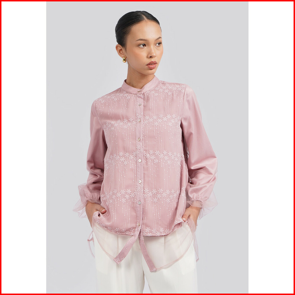 Executive Mandarin Collar Embroidered Blouse Lt. Pink