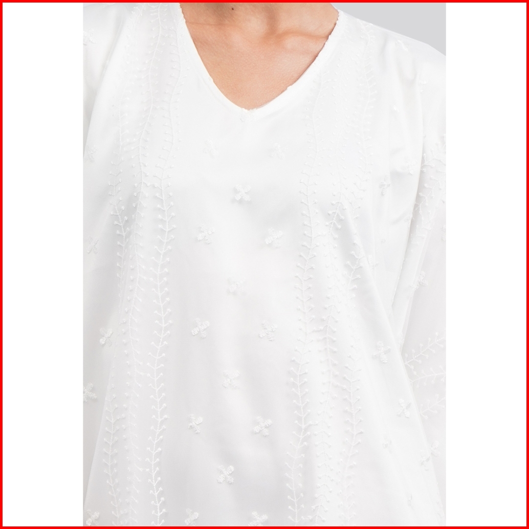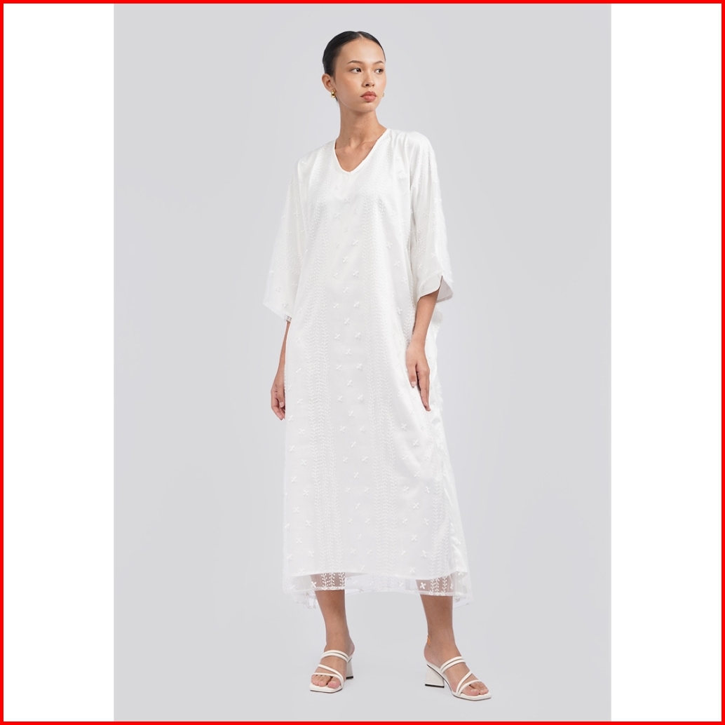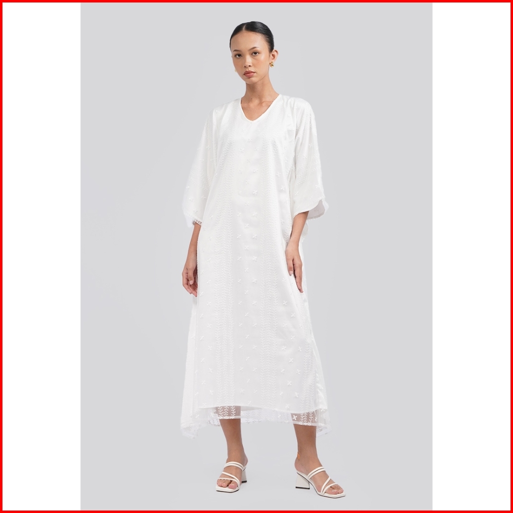 Executive Embroidered V-neck Kaftan White