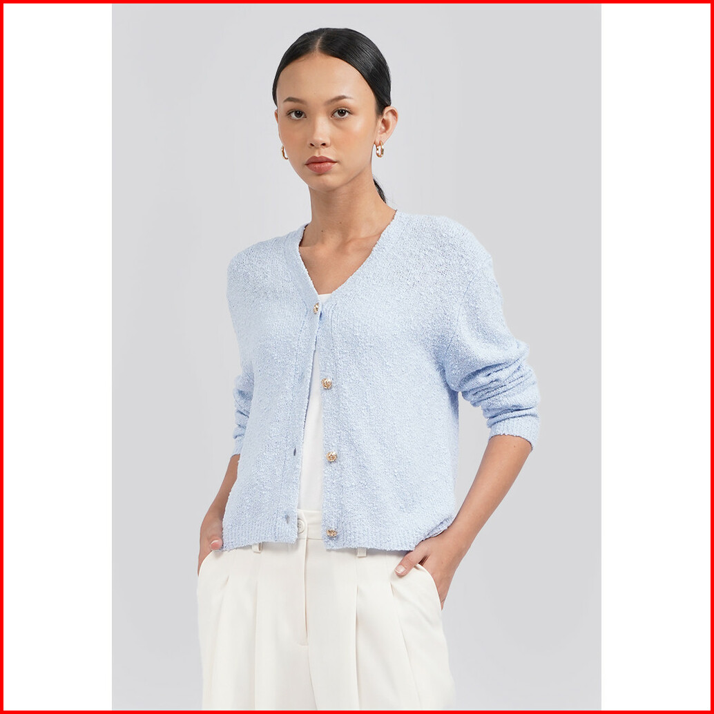 Executive Textured Long Sleeve Knit Cardigan Ice Blue