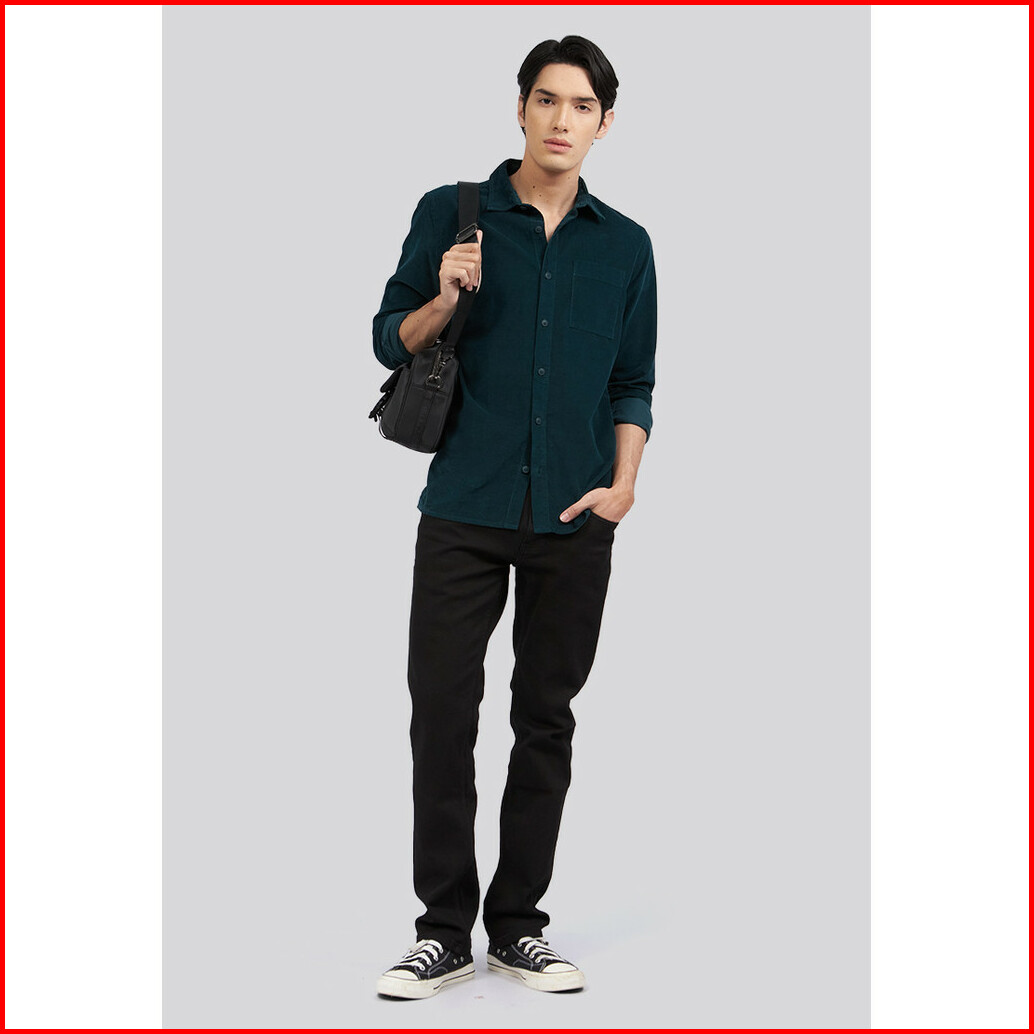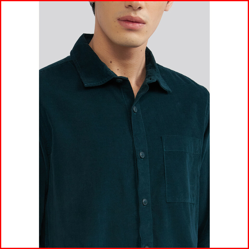 Executive Regular Fit Long Sleeve Corduroy Shirt Bottle Green