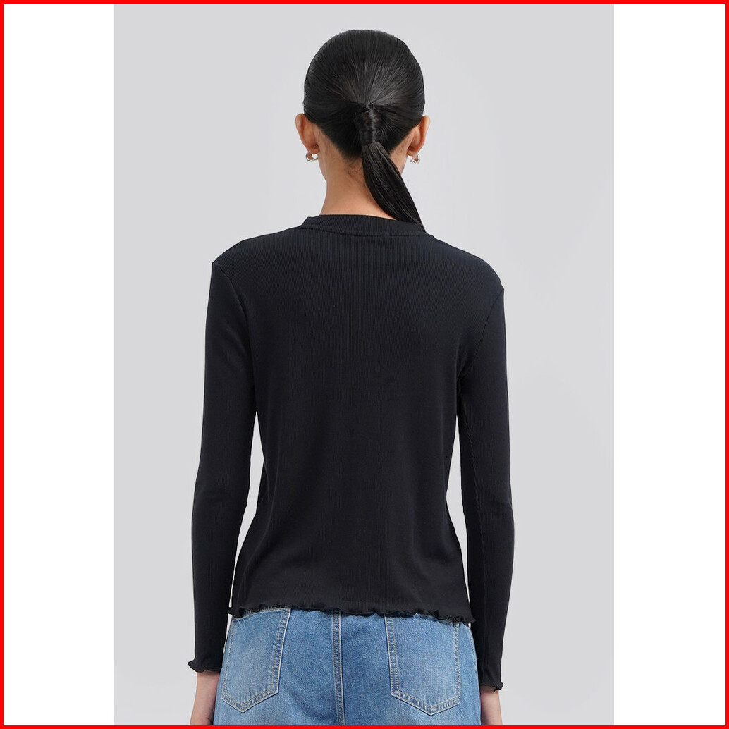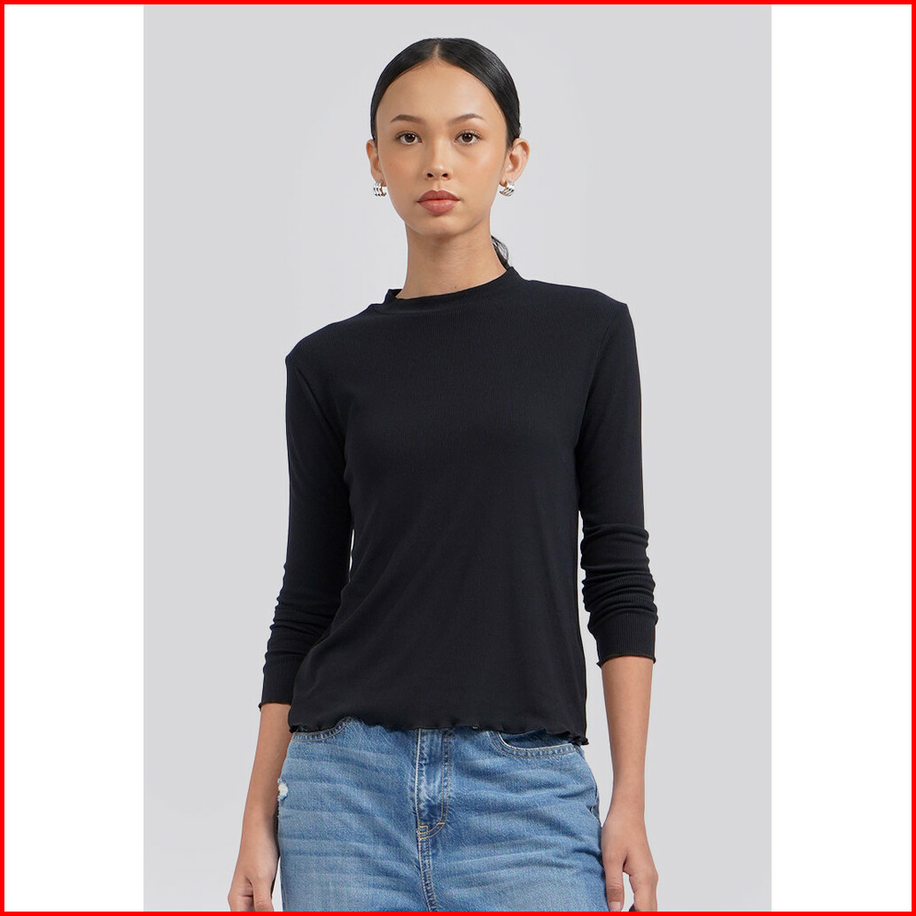 Executive Turtle Neck Long Sleeve Rib Top Black