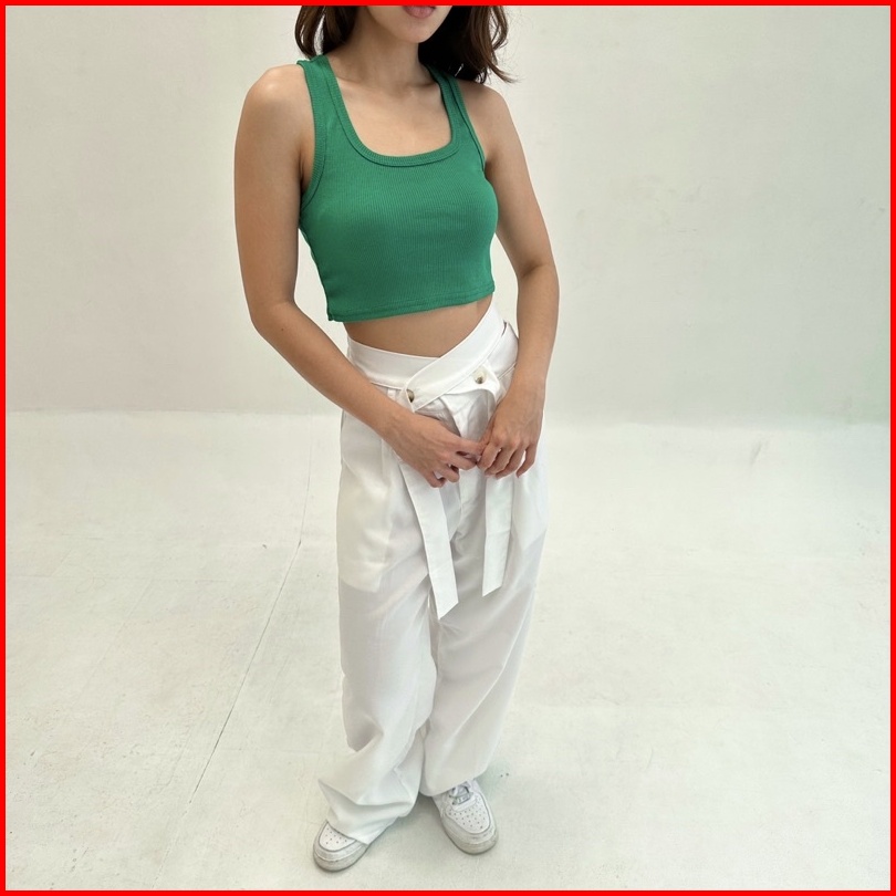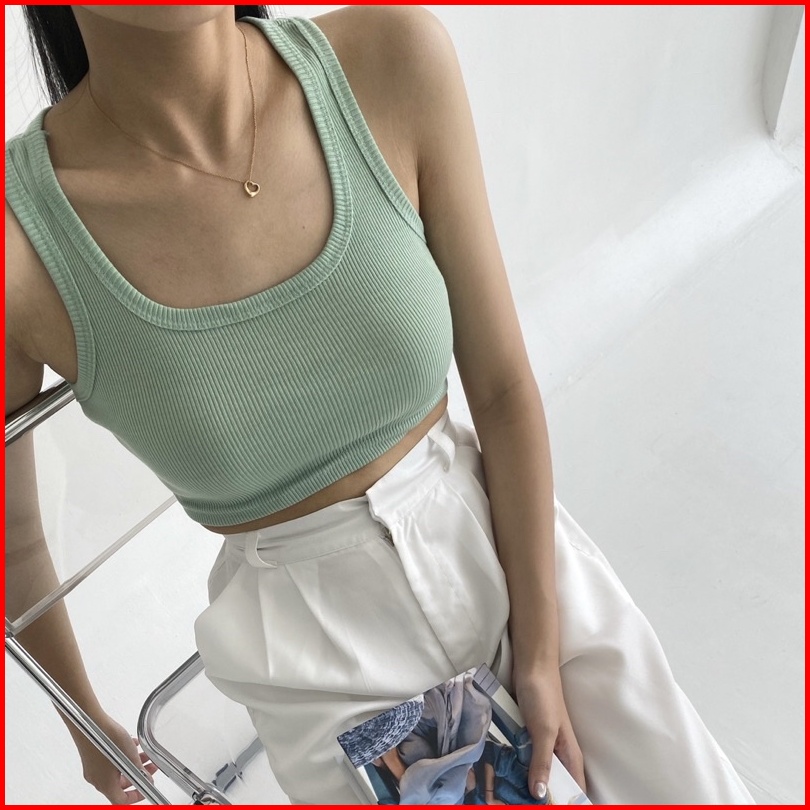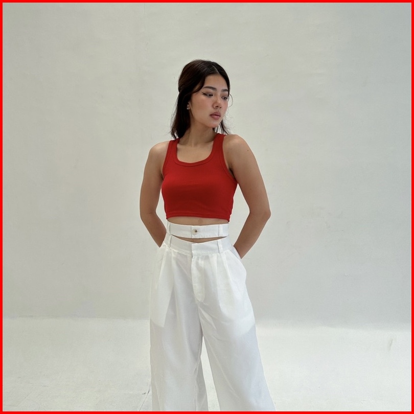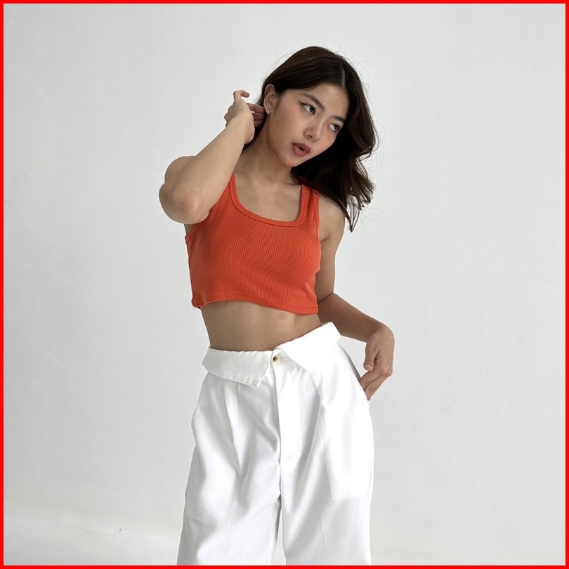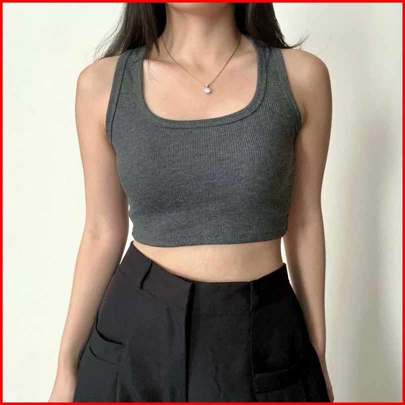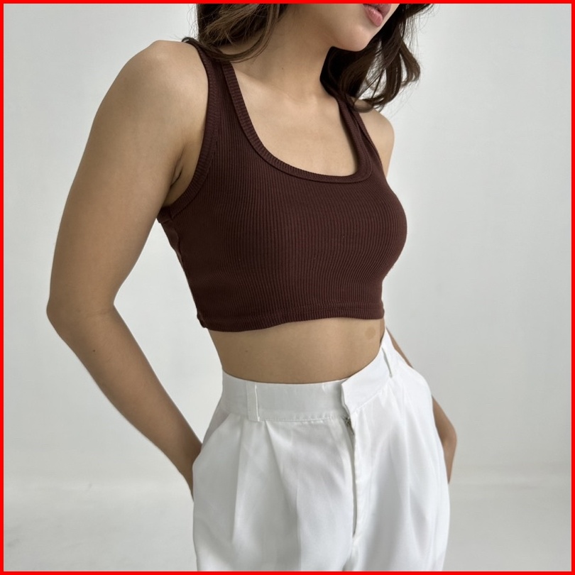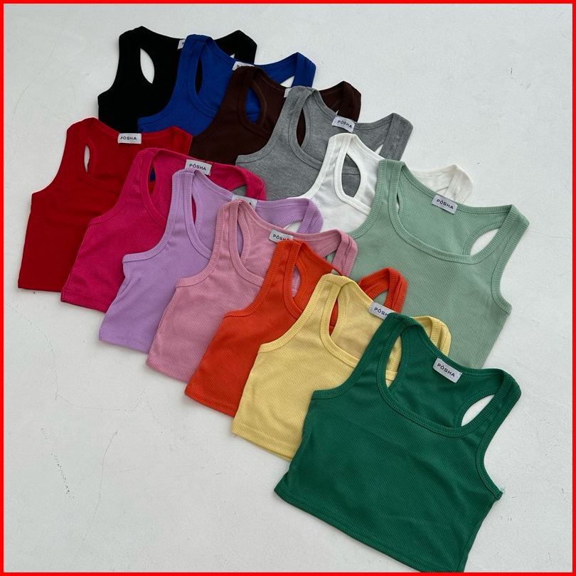Olla Top - Posha Ribbed Knit Square Tank Tanktop Summer Kotak Atasan Crop Top Stretch Rib Ribbed Knit