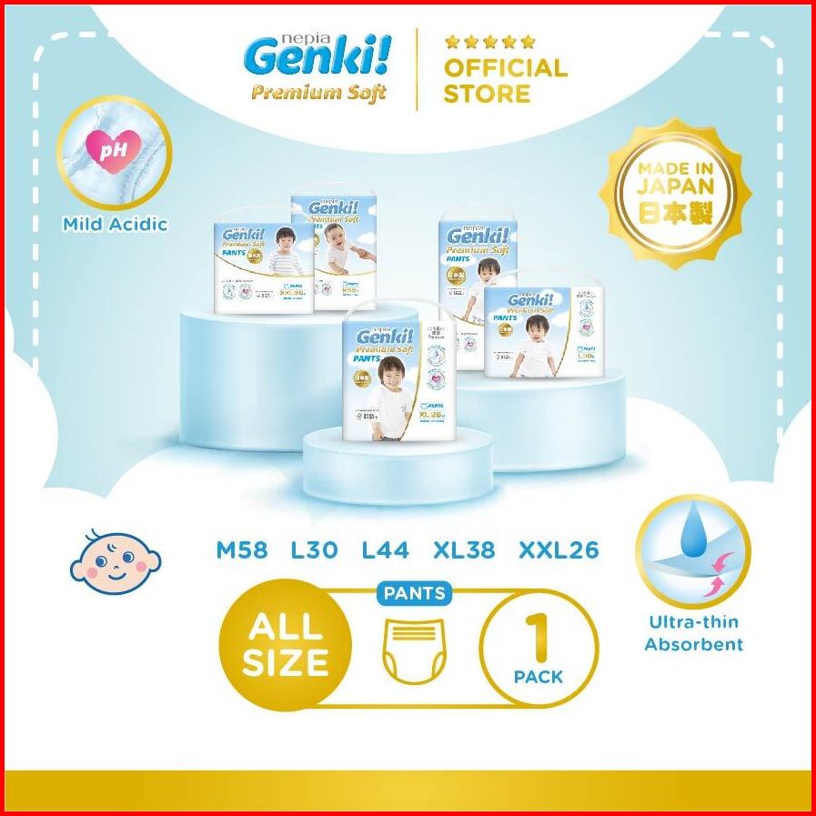 Nepia Genki Popok Bayi Pants Popok Celana Bayi Diapers Premium Soft M32 L30 Xl26 Xxl18 M58 L44 Xl38 Xxl26 Single Pack