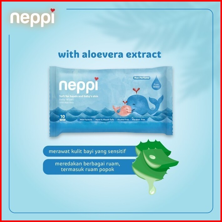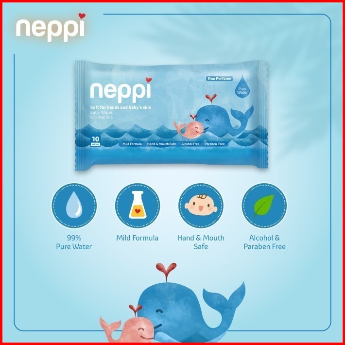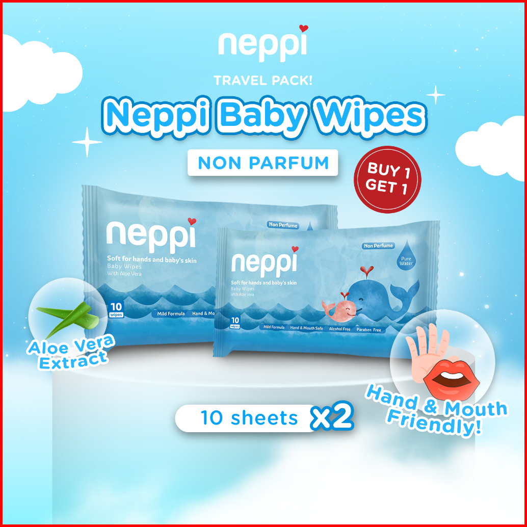Neppi Tisu Basah Baby Wipes Non Parfum 10s - Buy 1 Get 1 Free