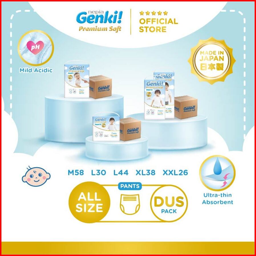 Dus Pack Nepia Genki Popok Bayi Pants Popok Celana Bayi Diapers Premium Soft M32 L30 Xl26 Xxl18 M58 L44 Xl38 Xxl26