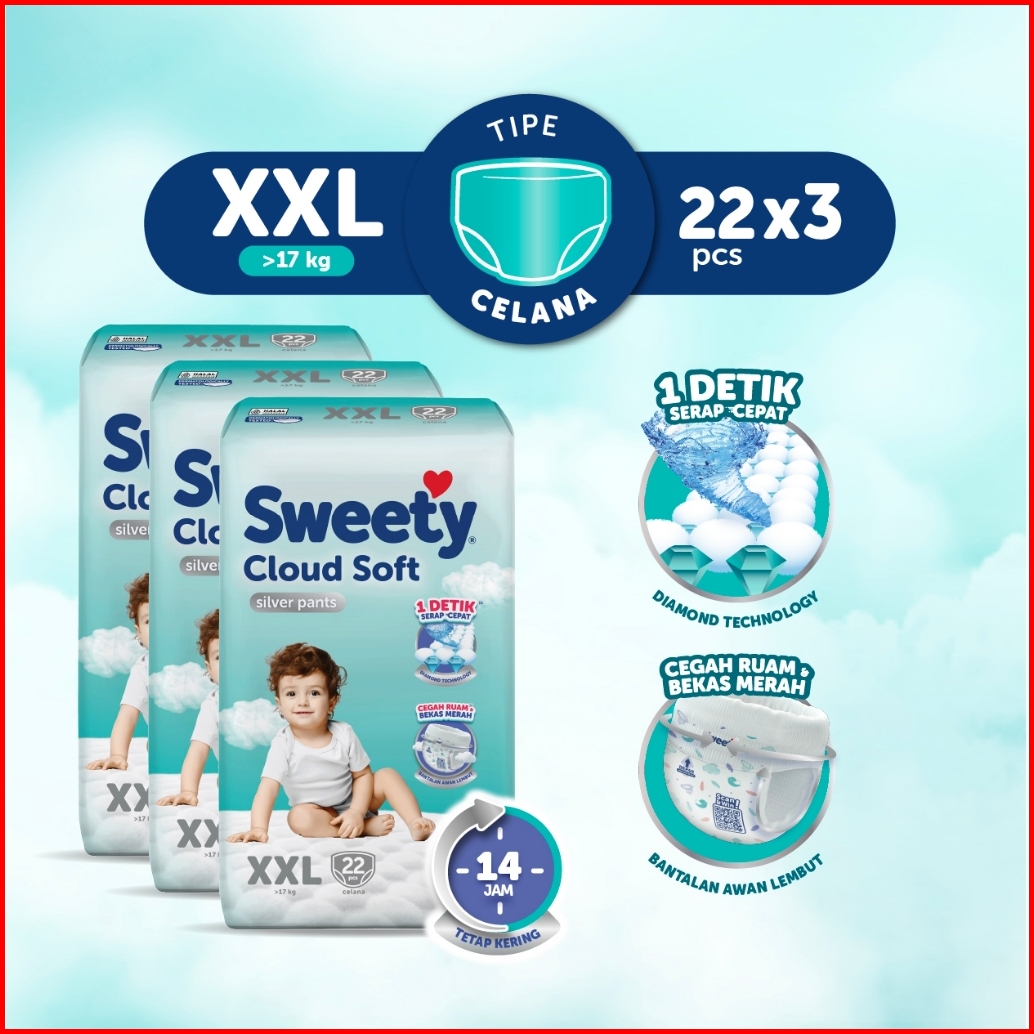 Sweety Silver Pants Cloud Soft Xxl 3 X 22s Popok Celana Baby Diapers