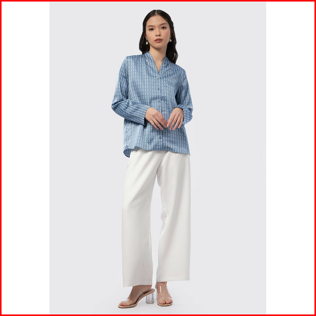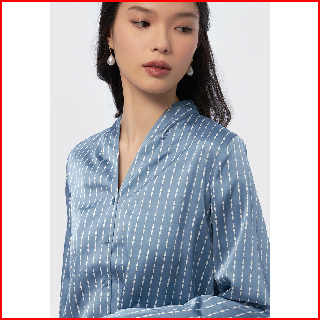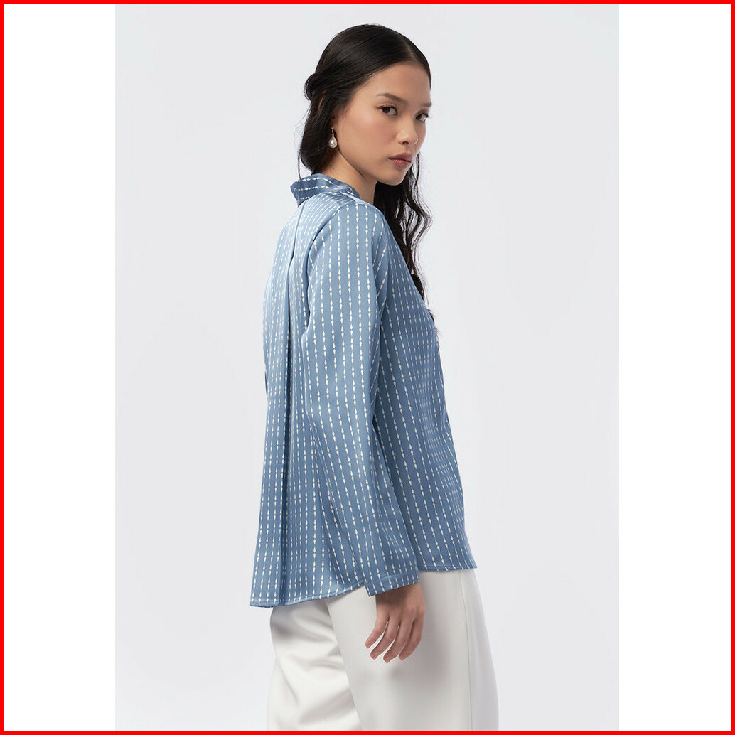 Executive Printed Long Sleeve Blouse Denim Blue