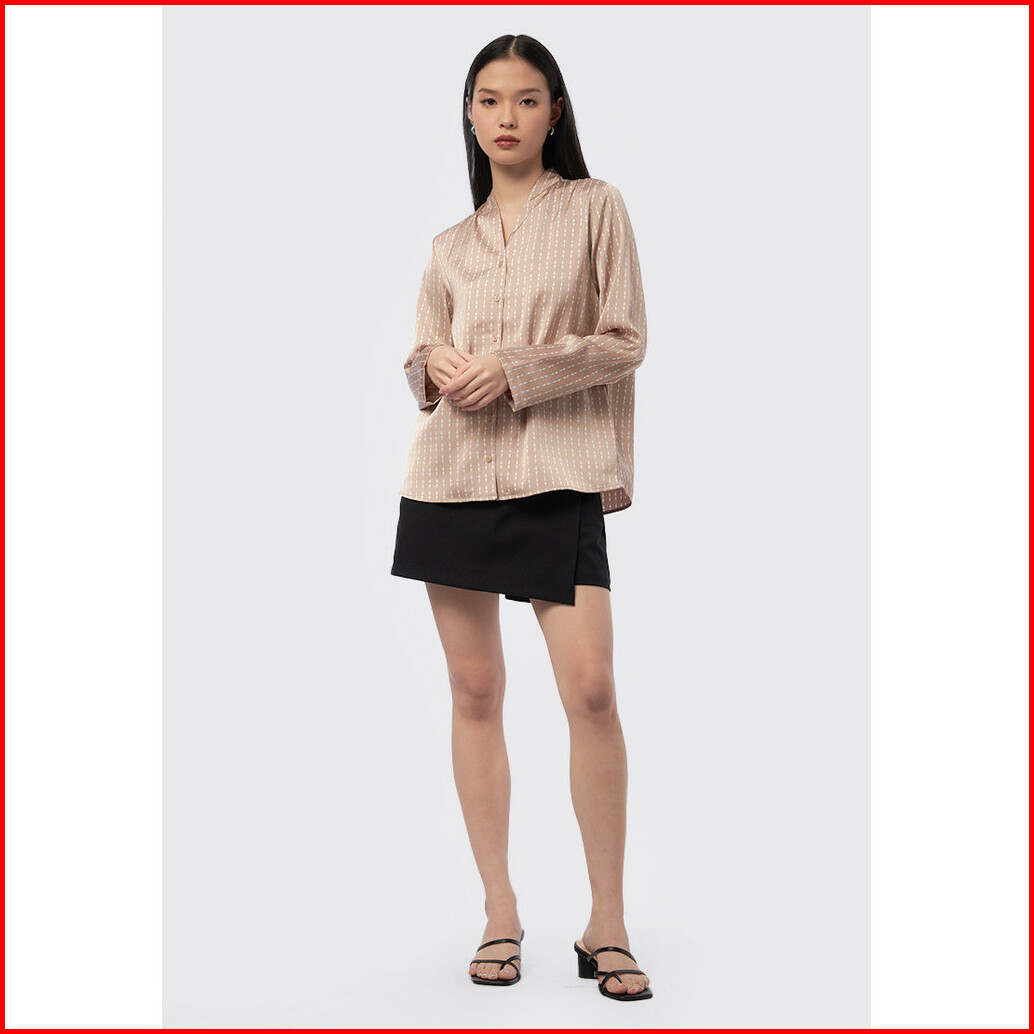 Executive Printed Long Sleeve Blouse Taupe