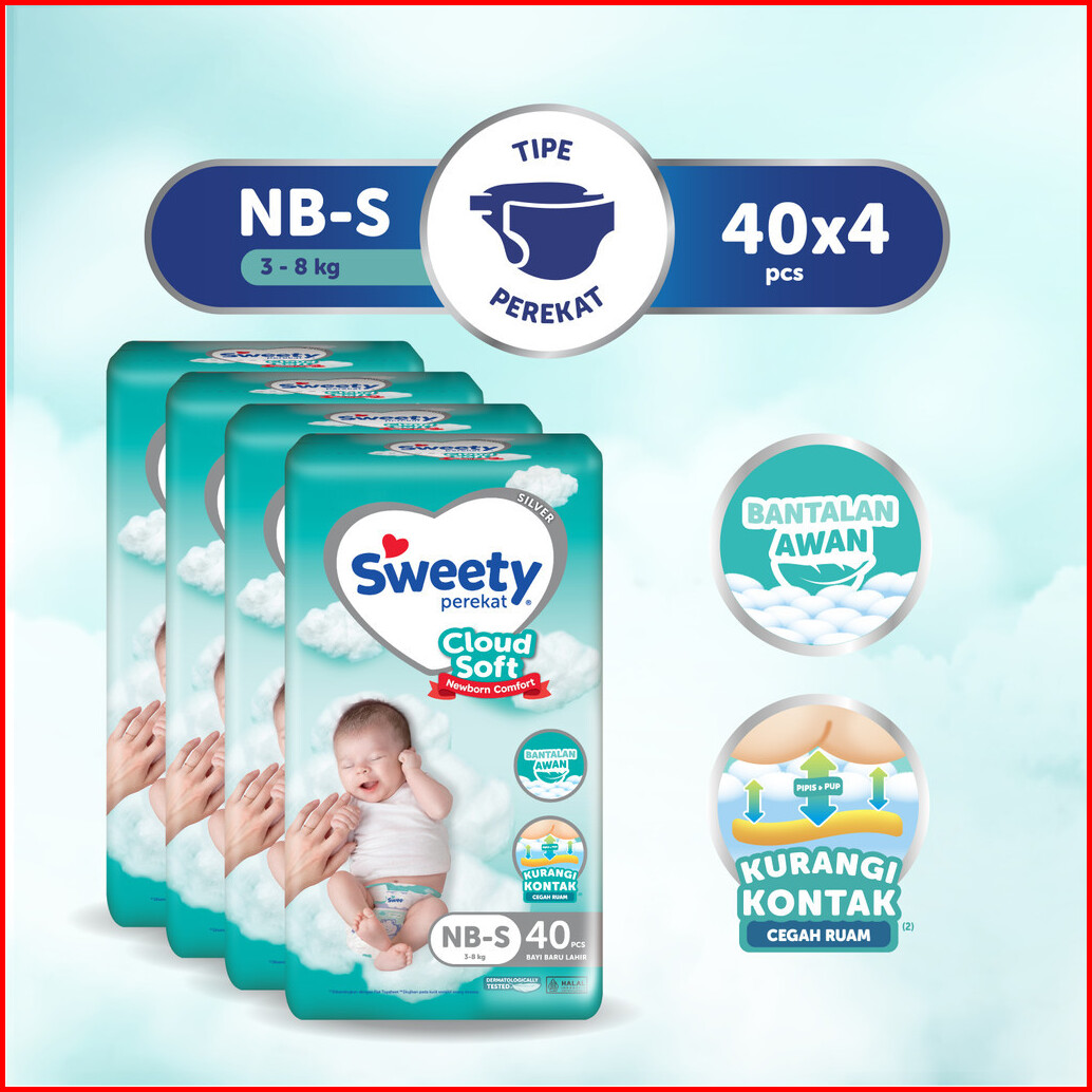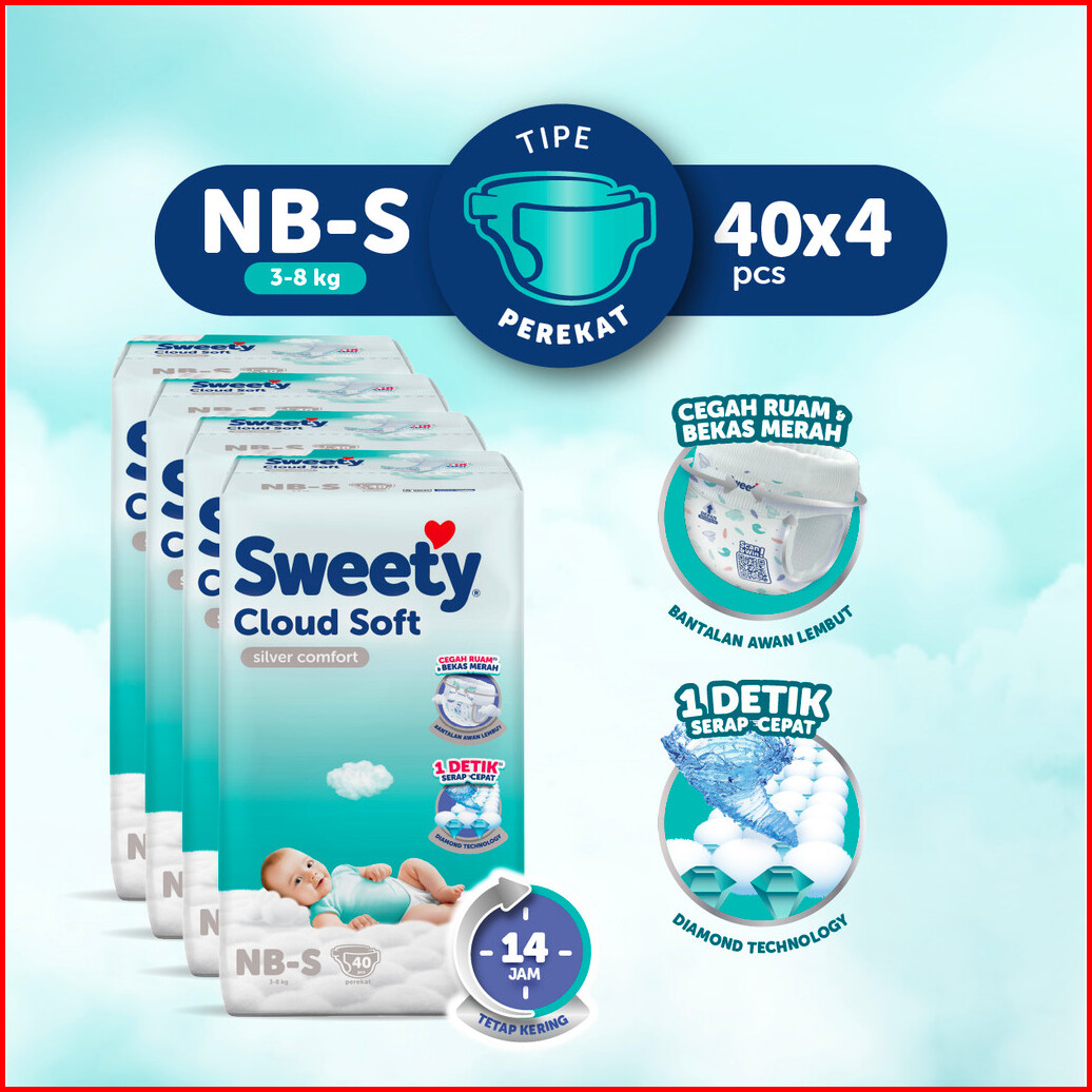 Sweety Silver Comfort Cloud Soft Newborn Nb-s 40 X 4 Popok Perekat Baby Diapers