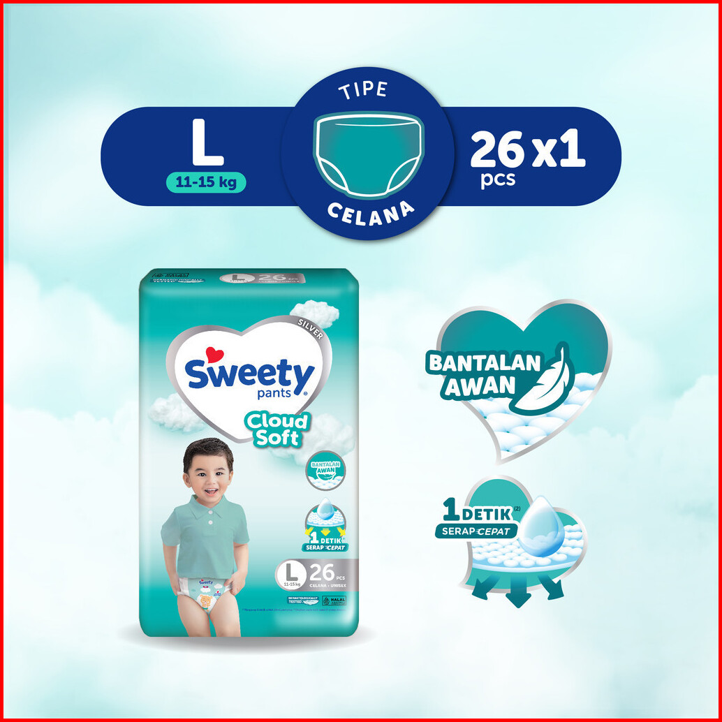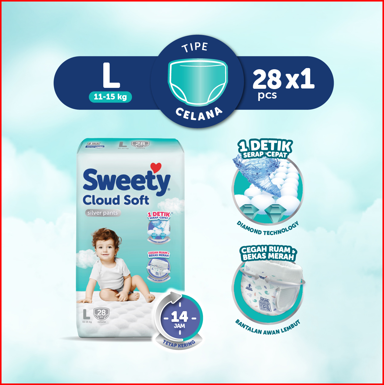 Sweety Silver Pants Cloud Soft L 28s Popok Celana Baby Diapers- Special Upcount