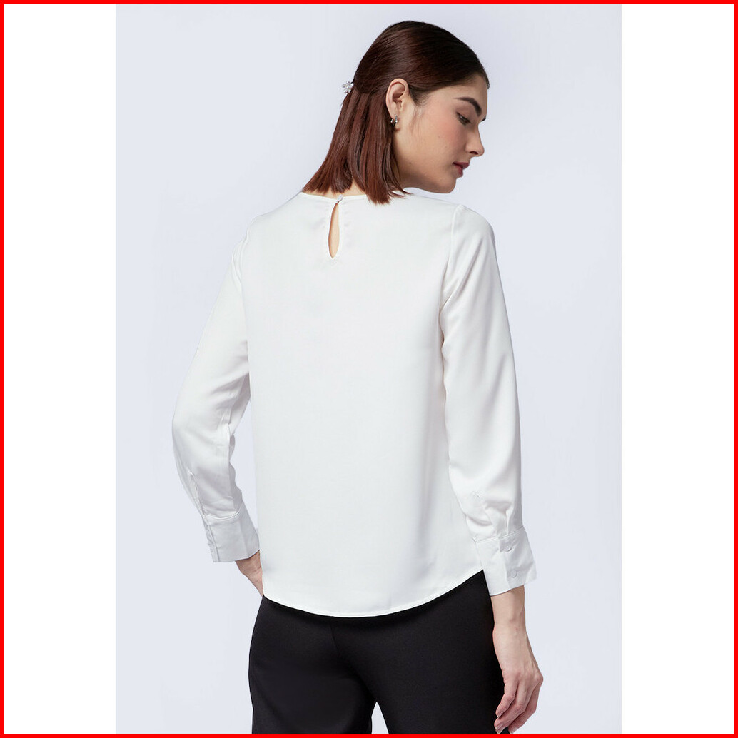 Executive Gathered Neck Long Sleeve Blouse Off White