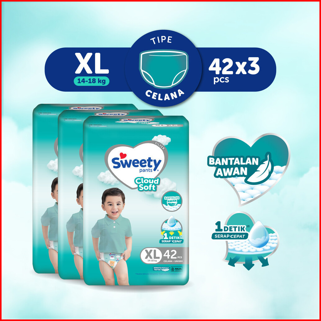 Sweety Silver Pants Cloud Soft Xl 42s X 3 Popok Celana Baby Diapers