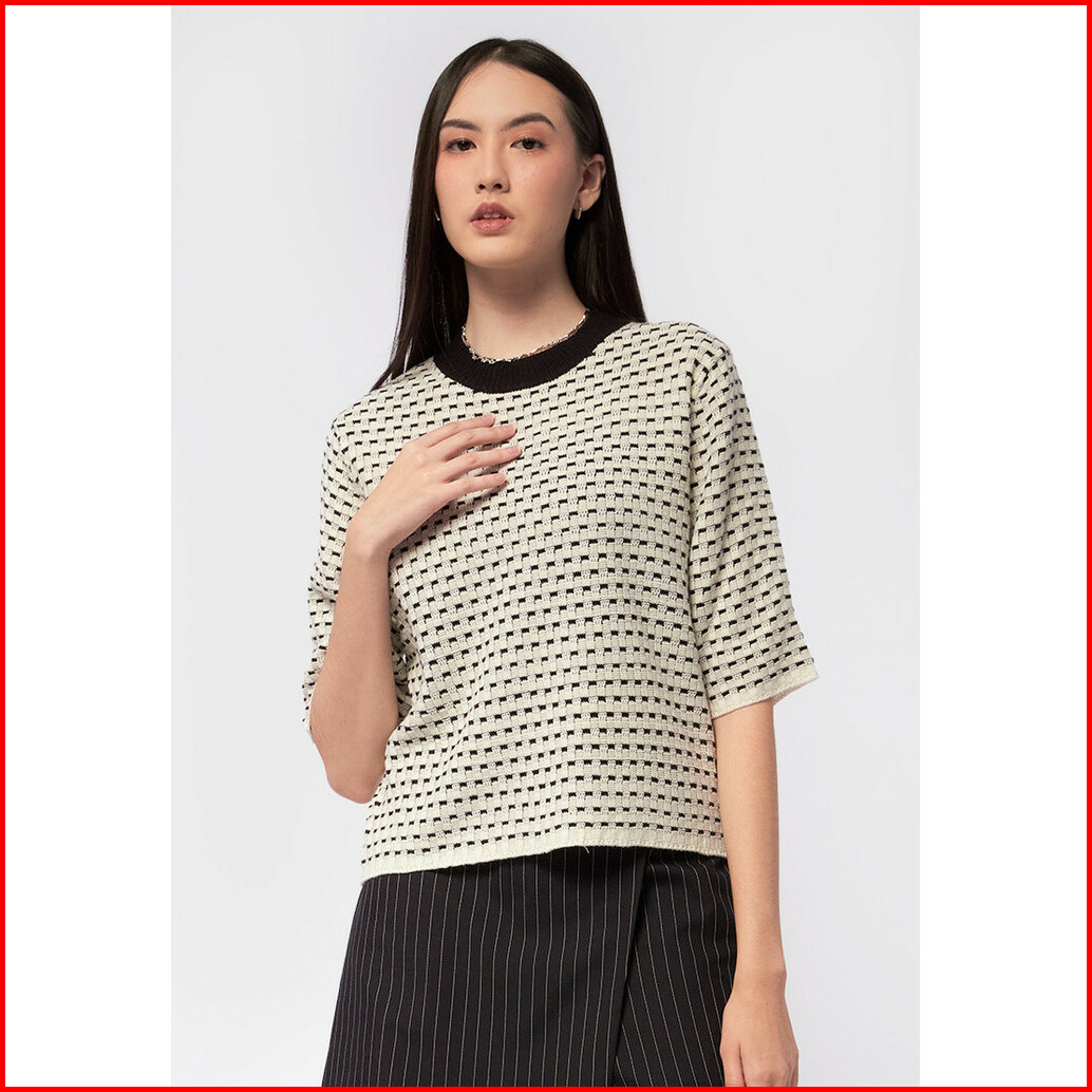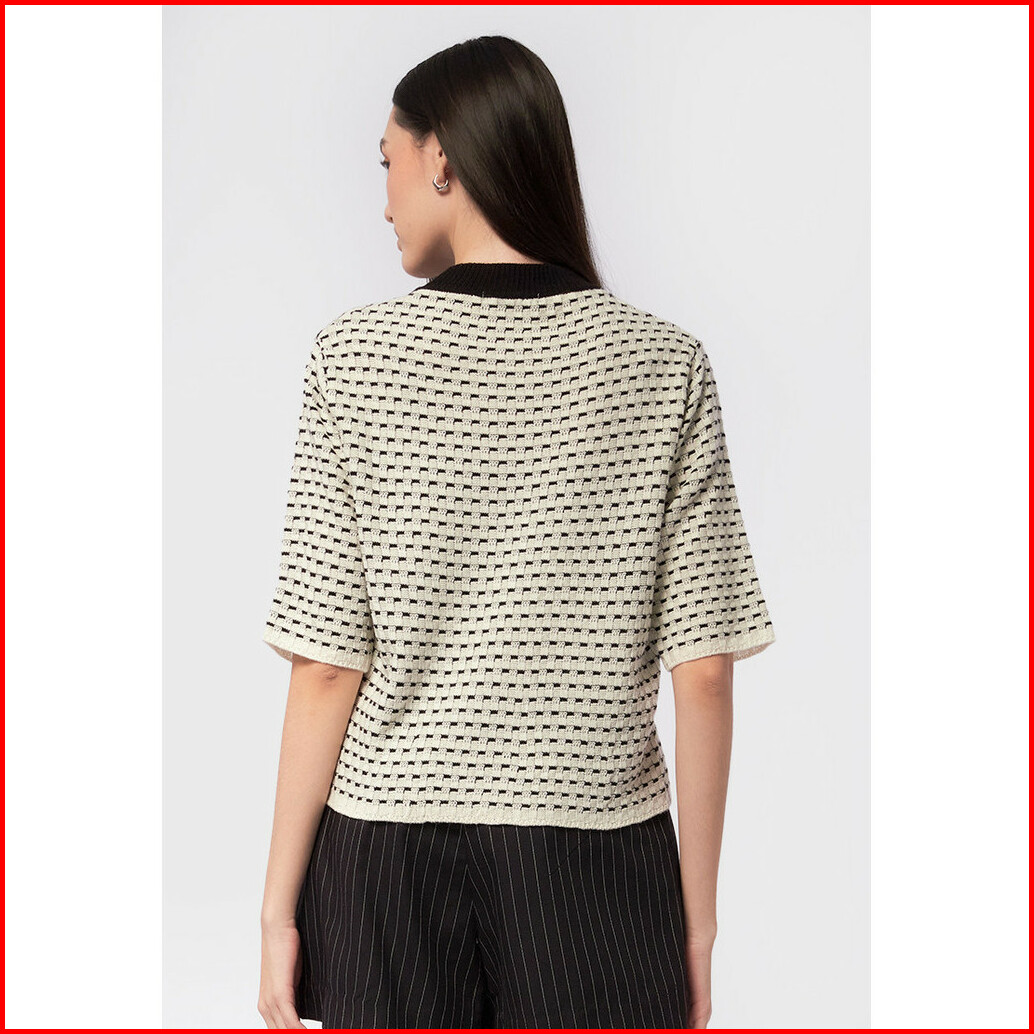 Executive Short Sleeve Jacquard Top Off White