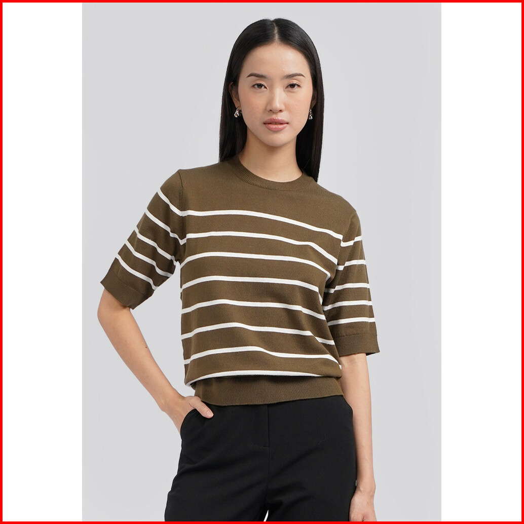 Executive Short Sleeve Stripes Knit Top Olive