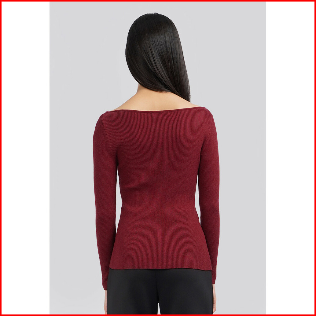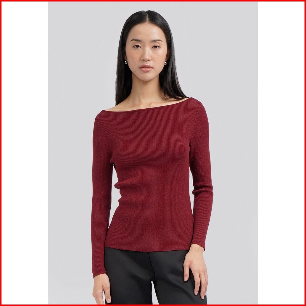 Executive Long Sleeve Boat Neck Rib Top Berry
