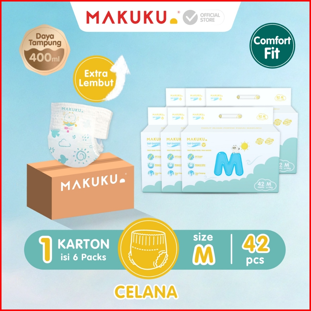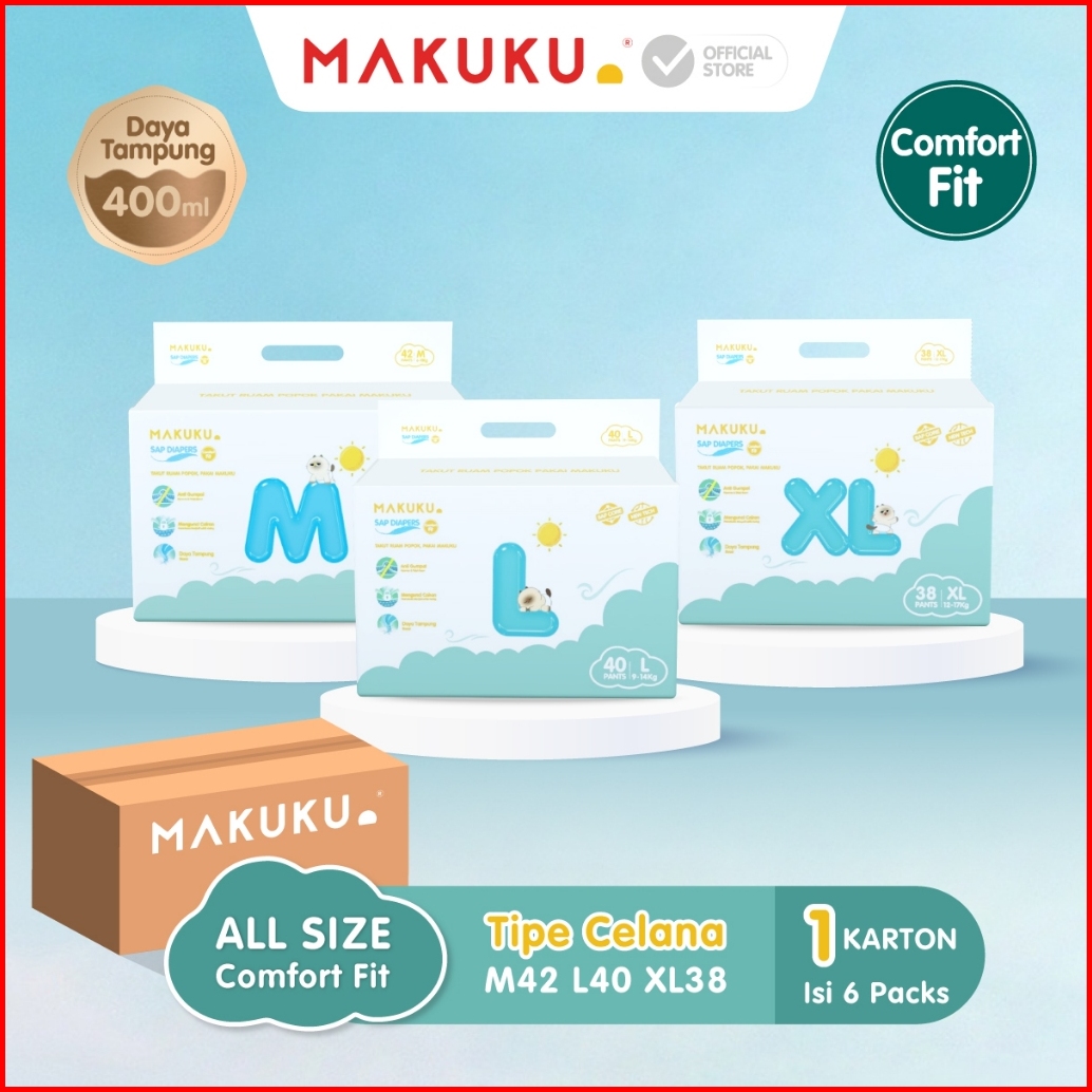 6 Pack Karton Makuku Sap Diapers Comfort Fit Jumbo Pants Tape M L Xl Popok Bayi Tipis Extra Dry Anti Gumpal Mengunci Cai