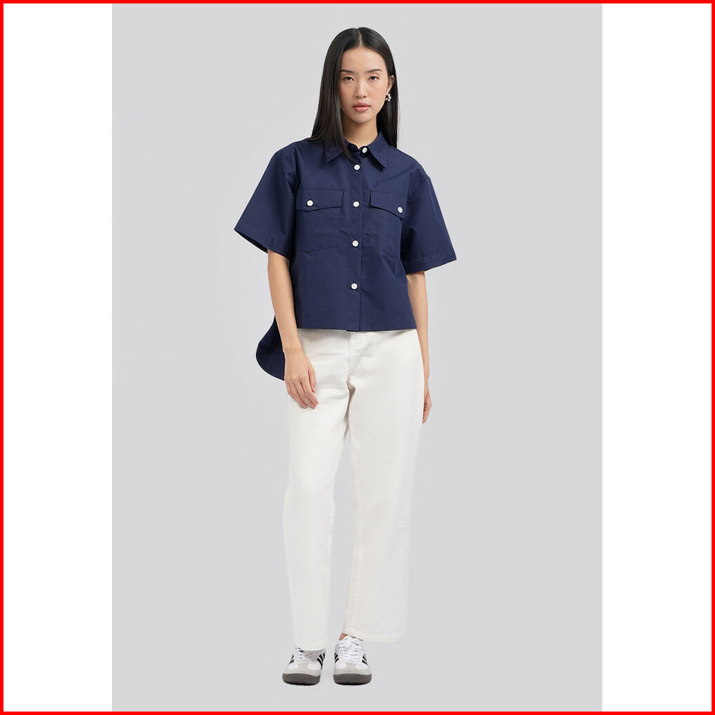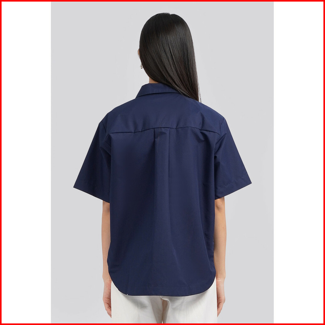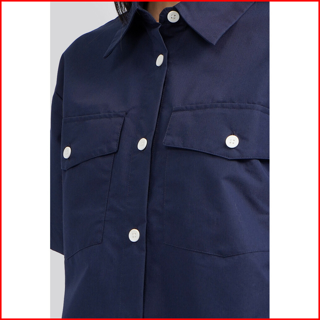 Executive Short Sleeve Boxy Shirt With Contrast Button Navy