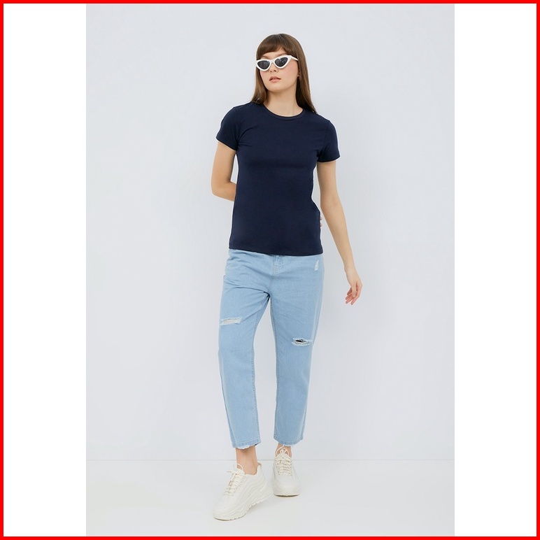 Executive Basic Round Neck Cotton T-shirt Navy