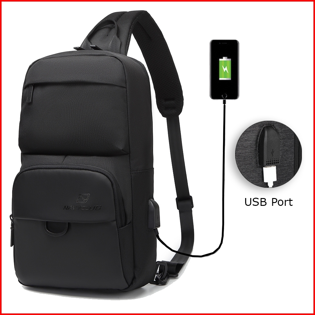 Navy Club Tas Selempang Travel Cross Body Bag Hge - Sling Bag Usb Port Tas Pria Wanita