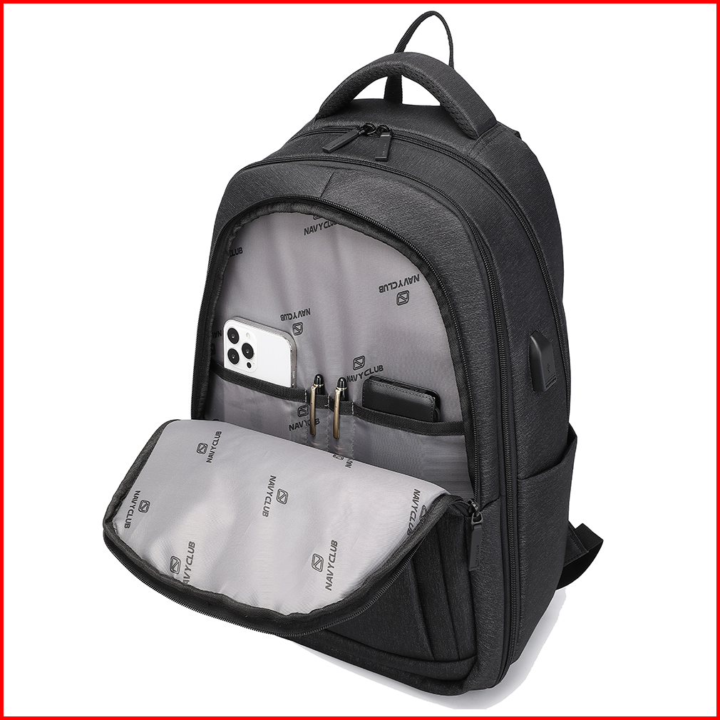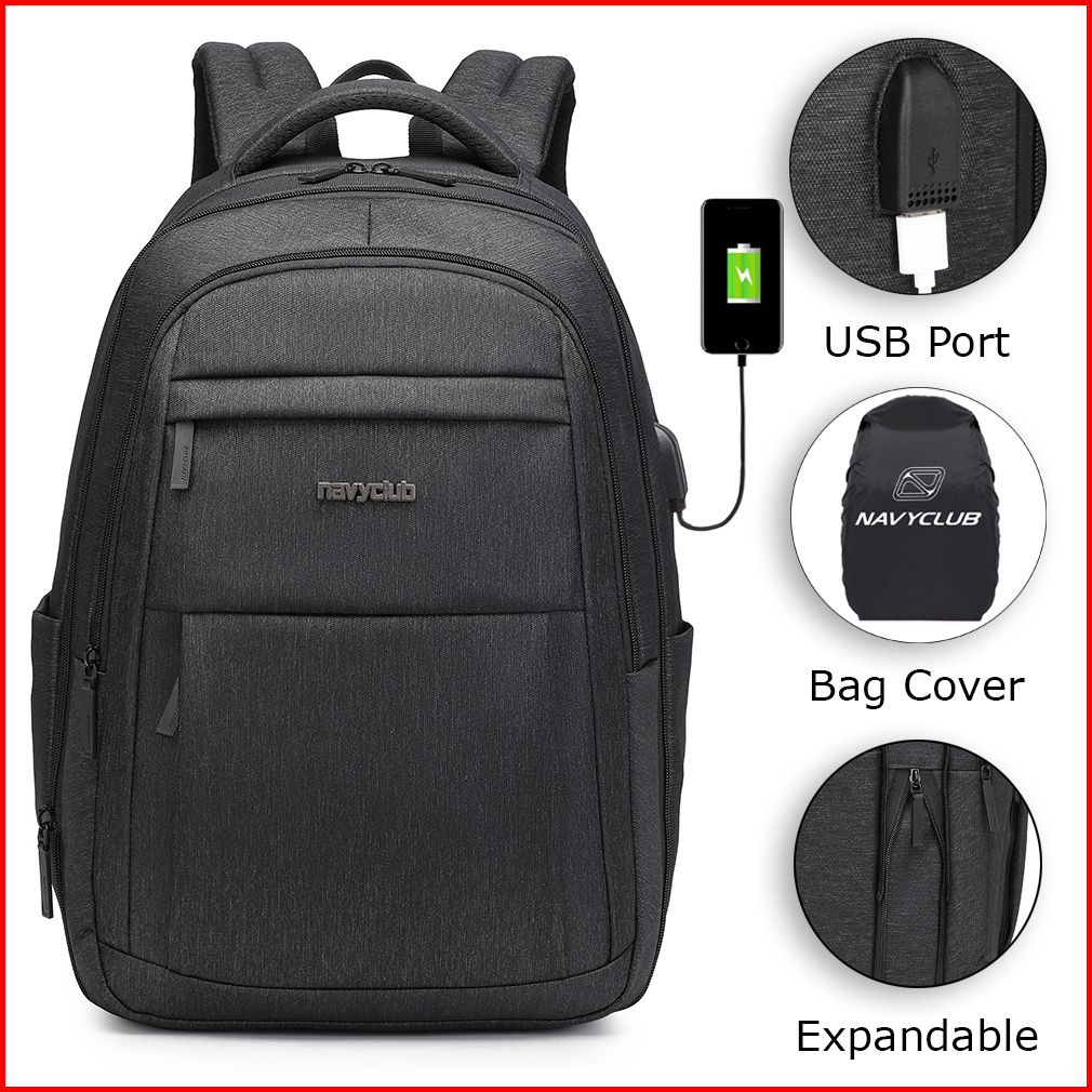 Navy Club Tas Ransel Laptop Expandable Ejf - Backpack Daypack Usb Port Tas Pria Wanita Free Bag Cover