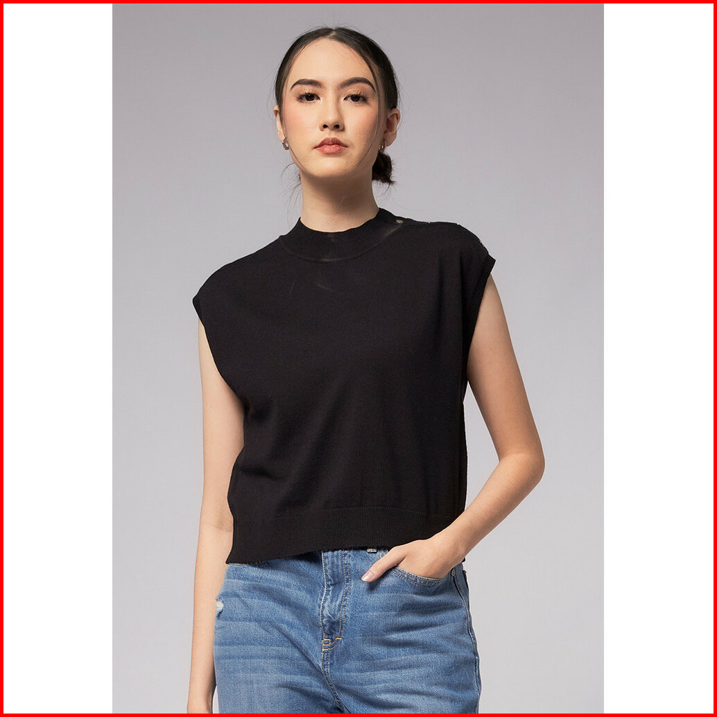 Executive Knit Top With Button Details Black
