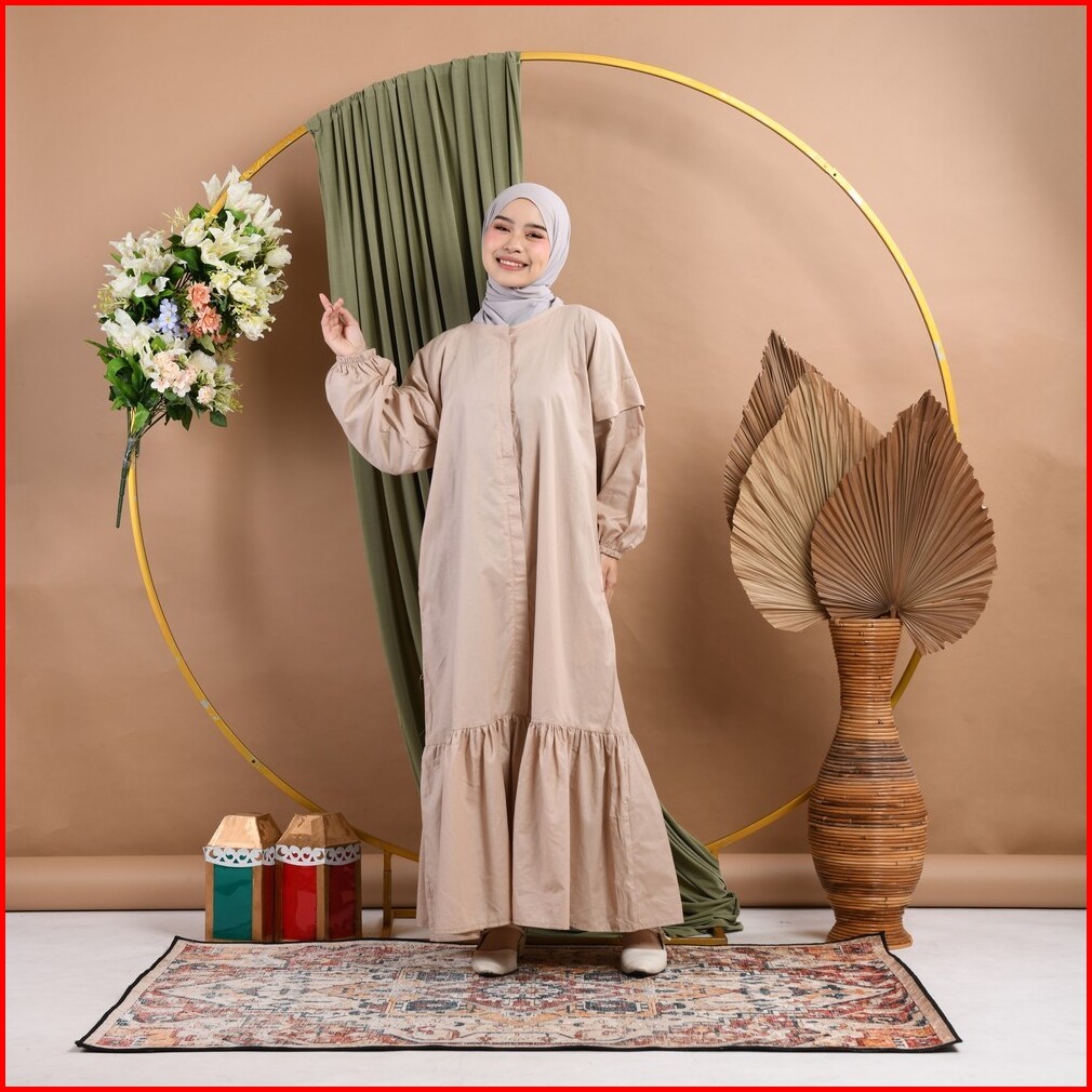 Mybamus Awani Dress Oversize Ruffle Gamis Katun Busui Lebaran 2025