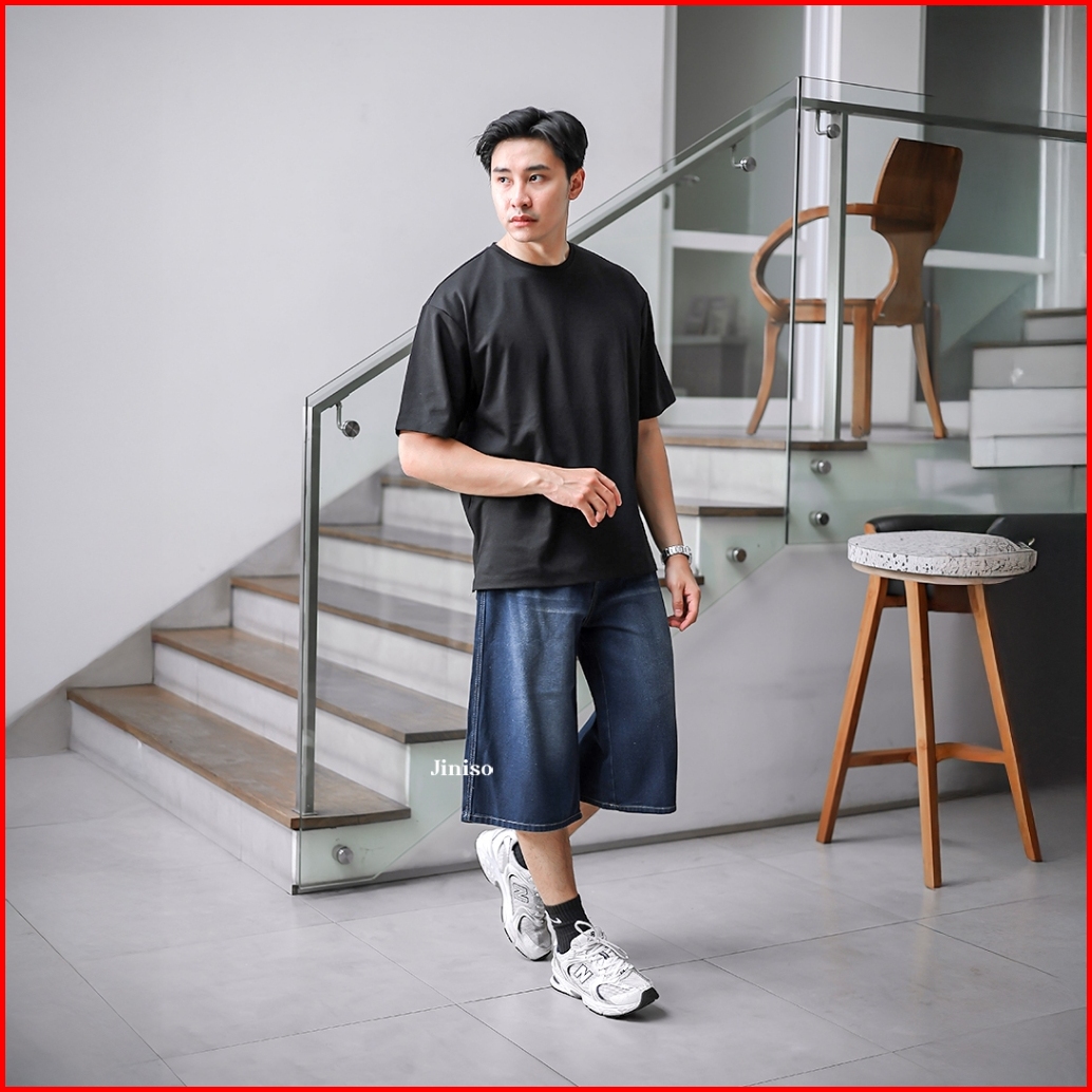 Jiniso Jorts Baggy Short Jeans Pria