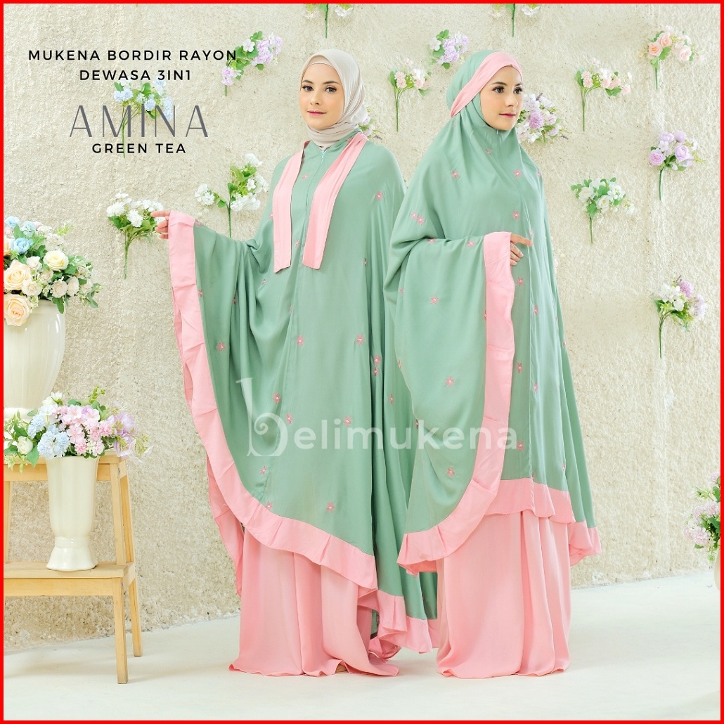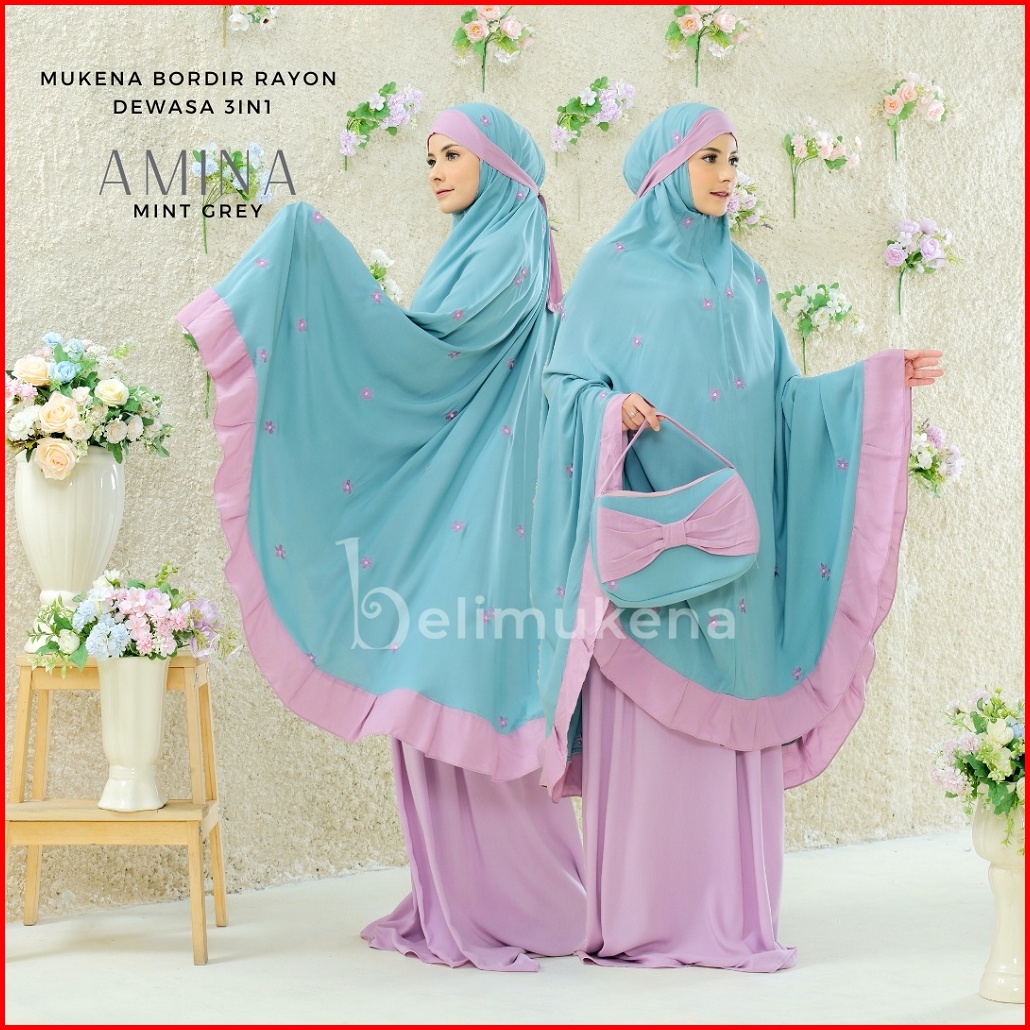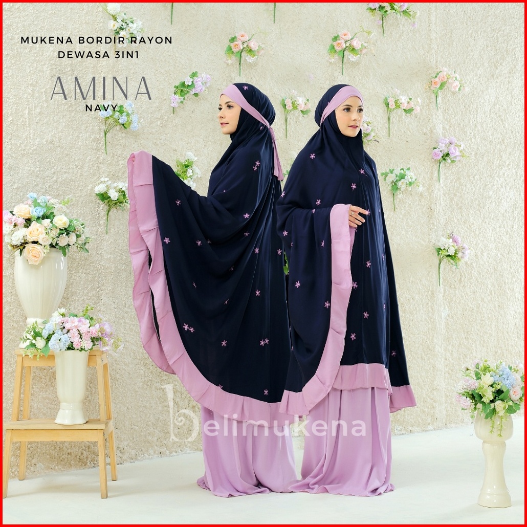 Belimukena Premium - Mukena Rayon Dewasa 3in1 Bordir Amina