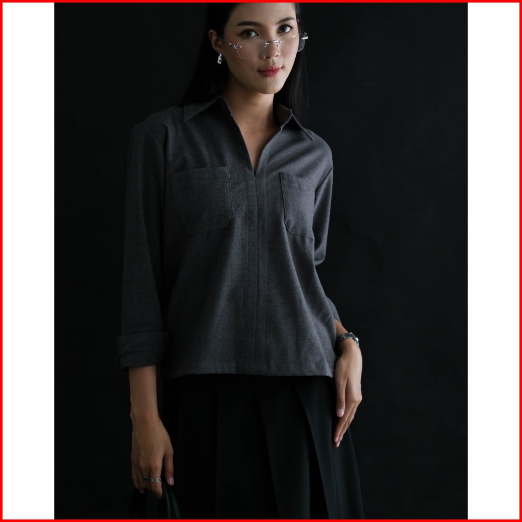 Myrubylicious Paluvi Pocket Flanel Shirt Atasan Wanita Kemeja