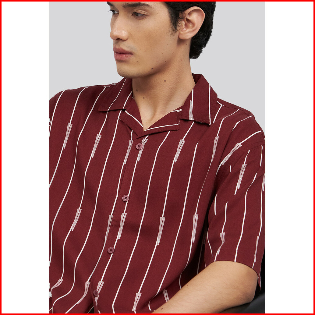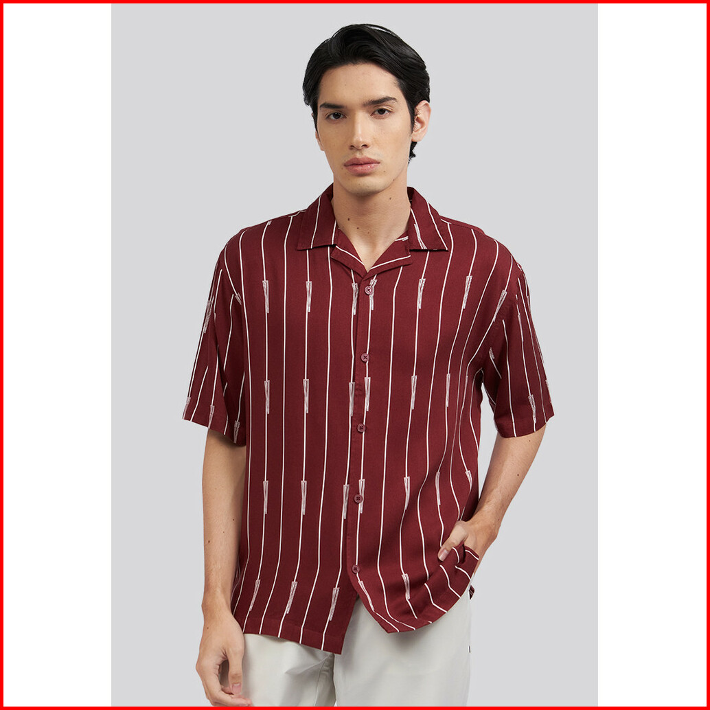 Executive Short Sleeve Stripes Resort Shirt Rust