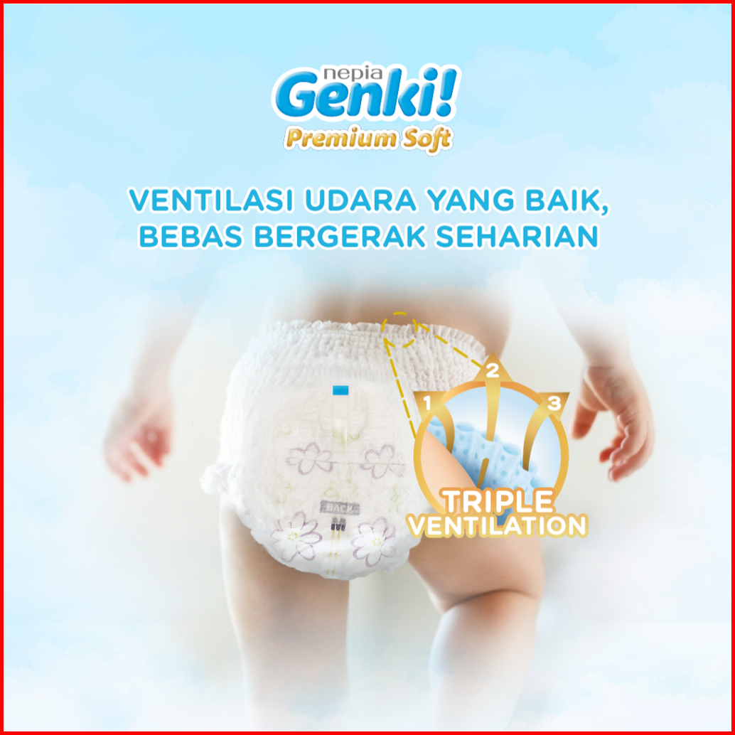 3 Pack Nepia Genki Jumbo Popok Bayi Pants Popok Celana Bayi Diapers Premium Soft M58