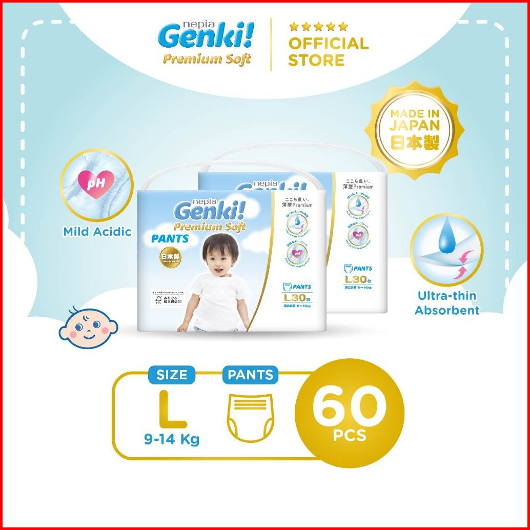Nepia Genki Pants Popok Celana Bayi L30 -diapers Premium Soft Twin Pack