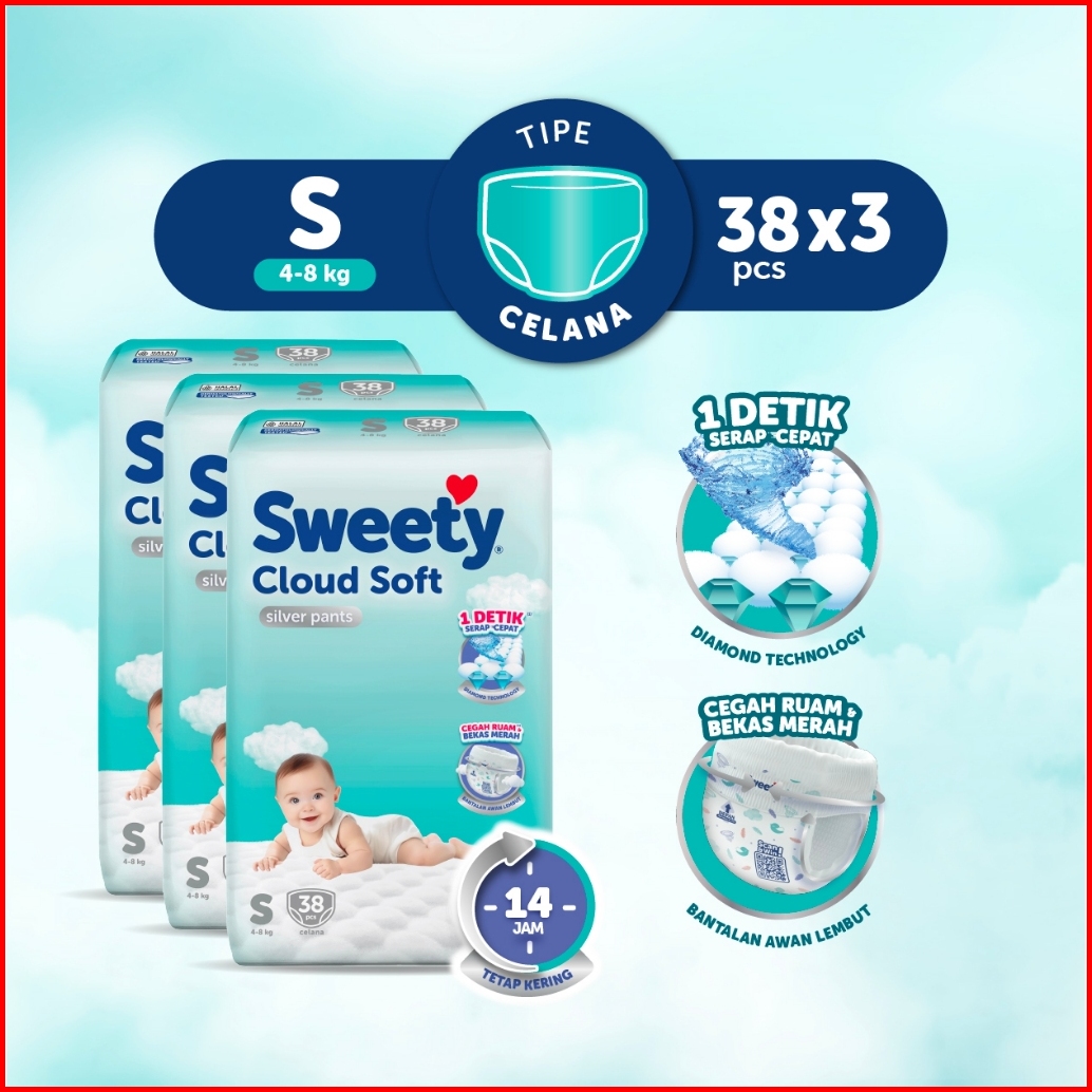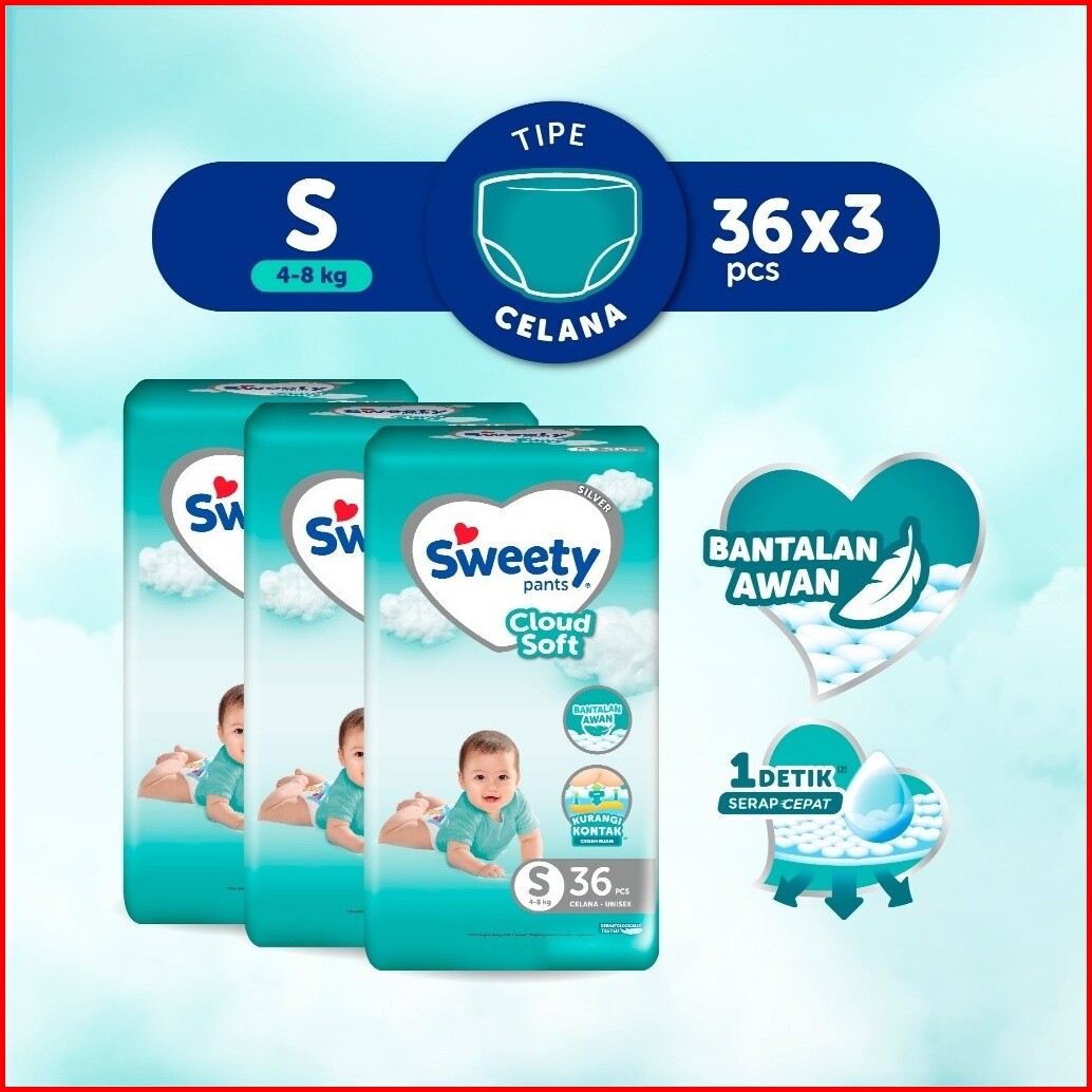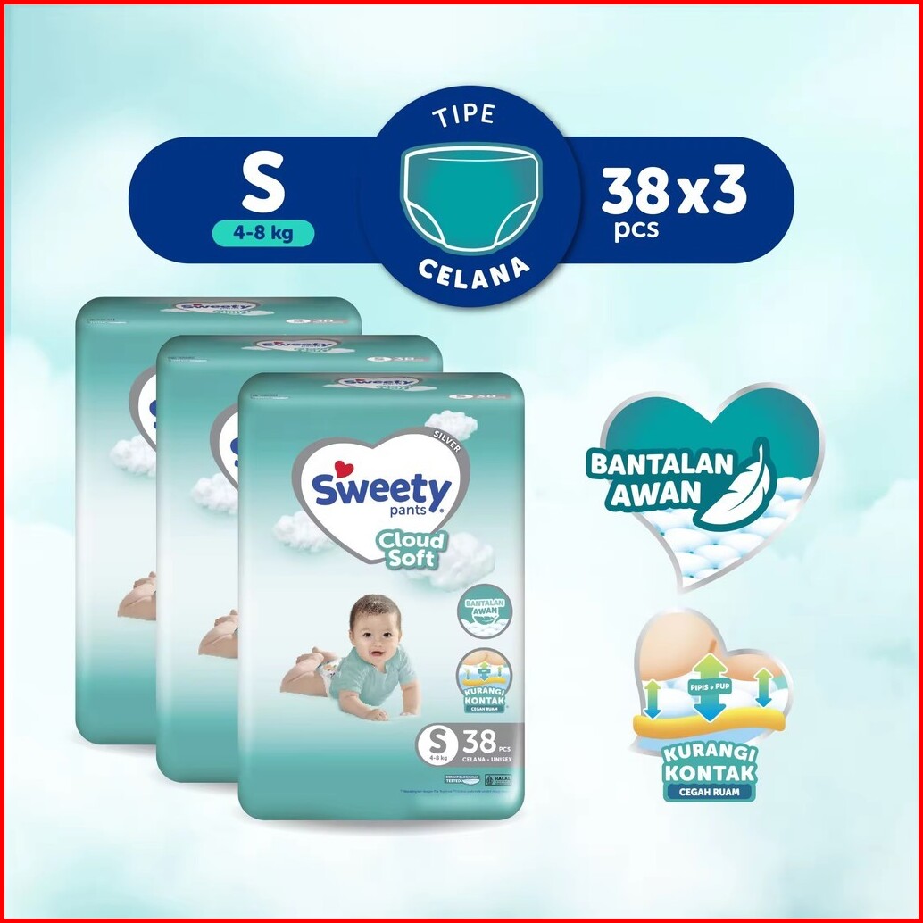 Sweety Silver Pants Cloud Soft S-38s X 3 Popok Celana Baby Diapers - Special Upcount