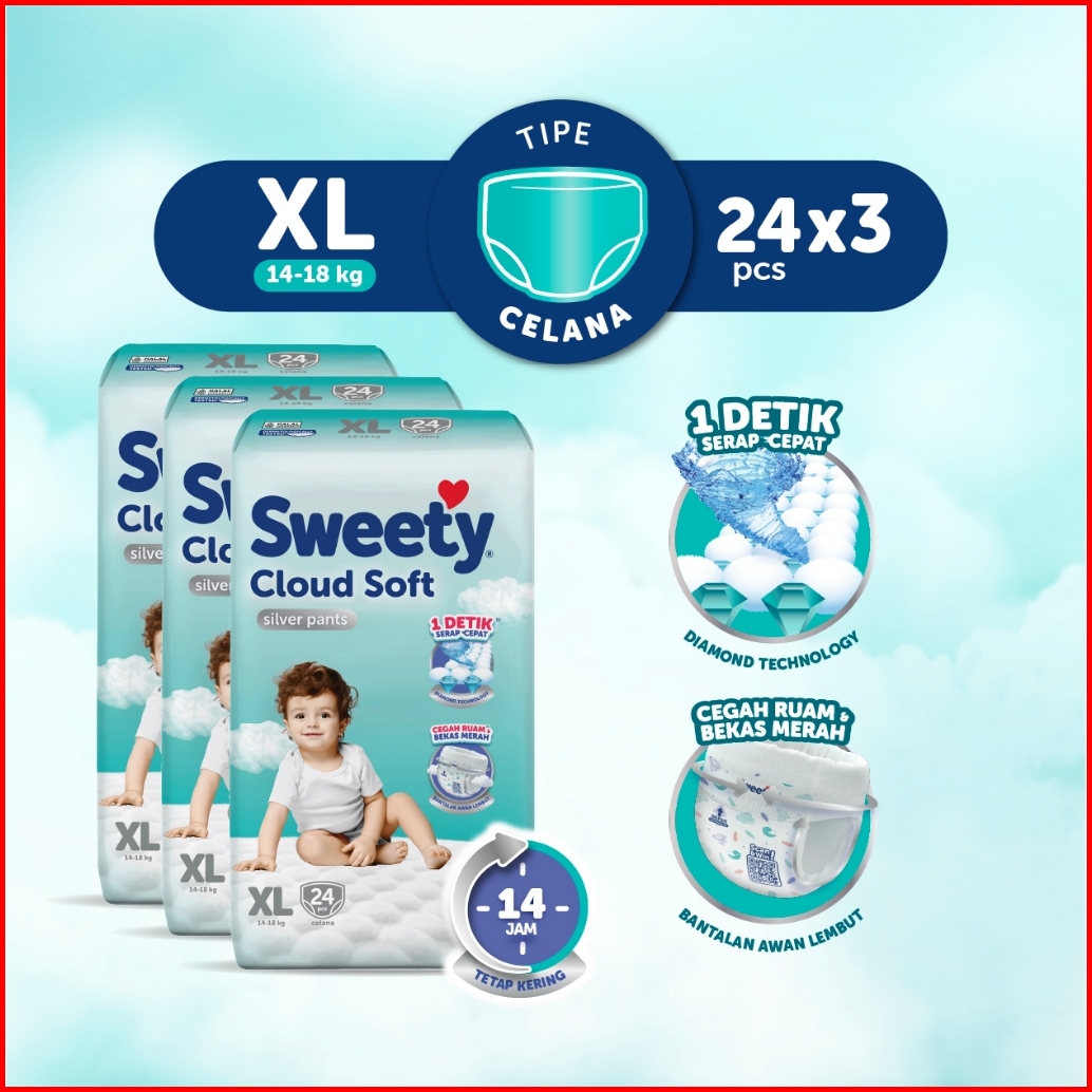 Sweety Silver Pants Cloud Soft Xl 3 X 24s Popok Celana Baby Diapers