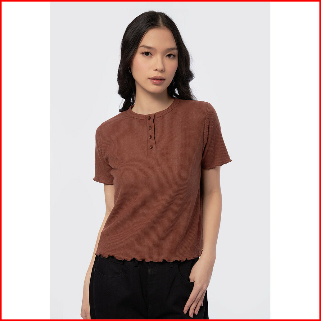 Executive Button Up Short Sleeve Top Dark Brown