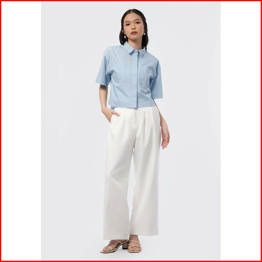 Executive Short Sleeve Blouse With Hidden Button Lt. Blue