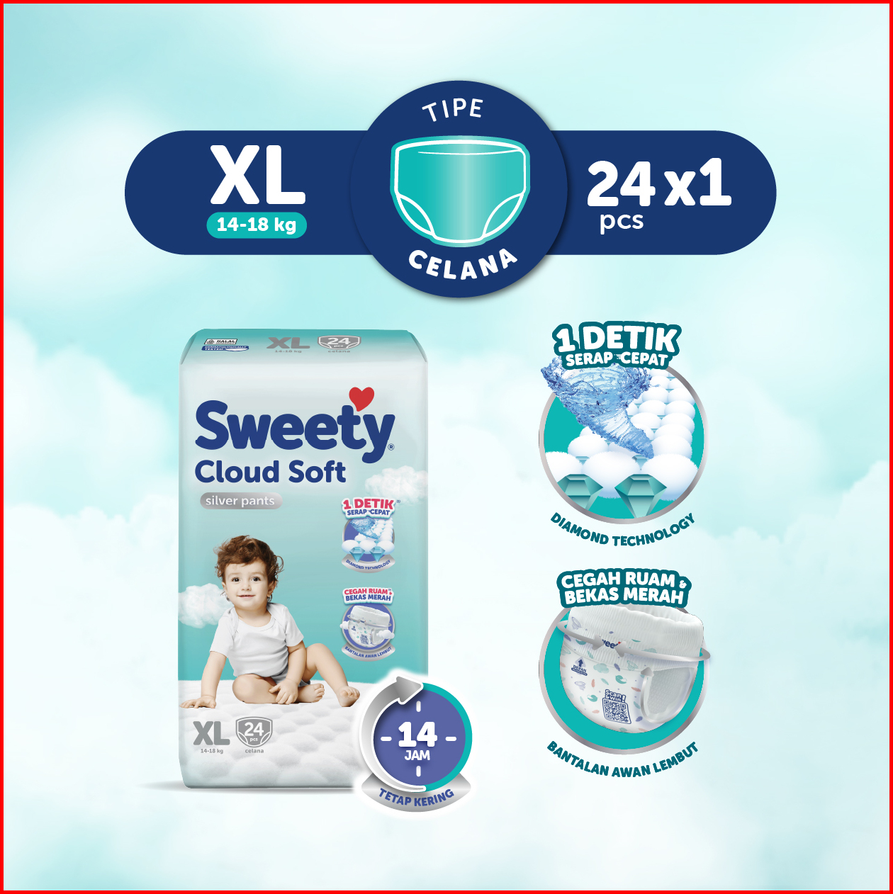 Sweety Silver Pants Cloud Soft Xl 24s Popok Celana Baby Diapers