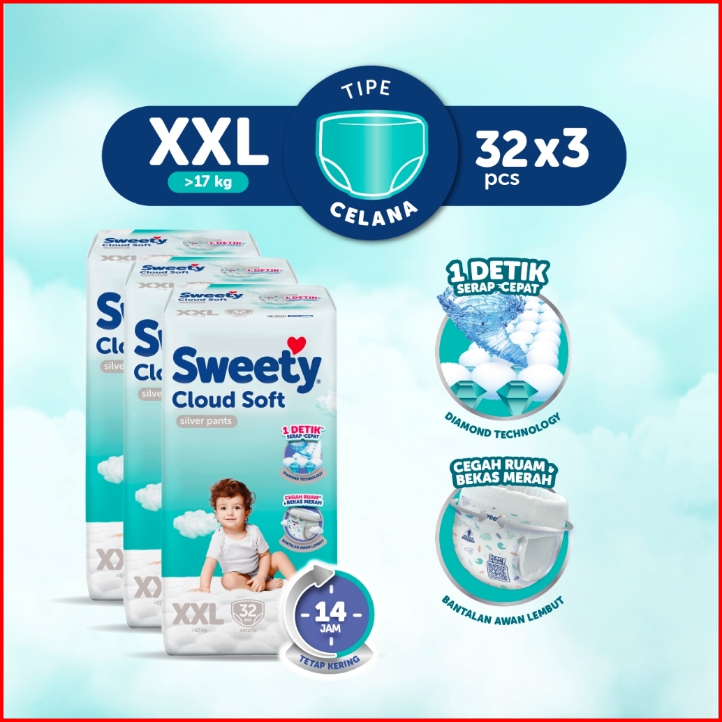 Sweety Silver Pants Cloud Soft Xxl 32s X 3 Popok Celana Baby Diapers
