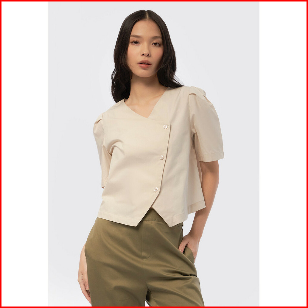 Executive Asymmetrical Short Sleeve Blouse Beige