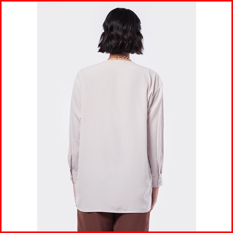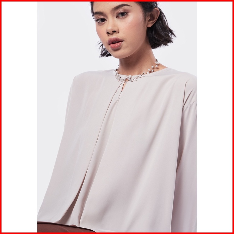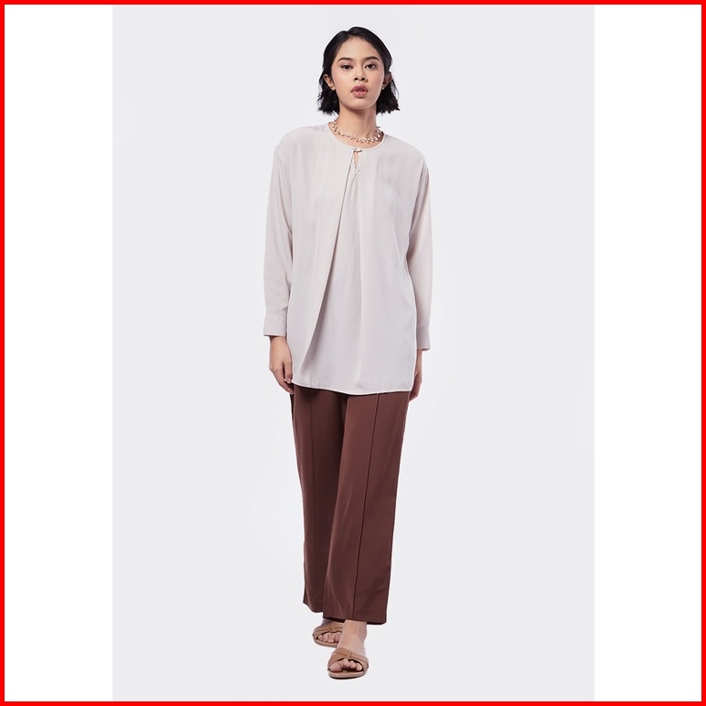 Executive Front Pleated Long Sleeve Tunic Ecru