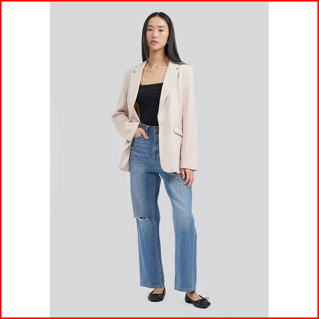 Executive Oversized Long Sleeve Blazer Lt. Beige