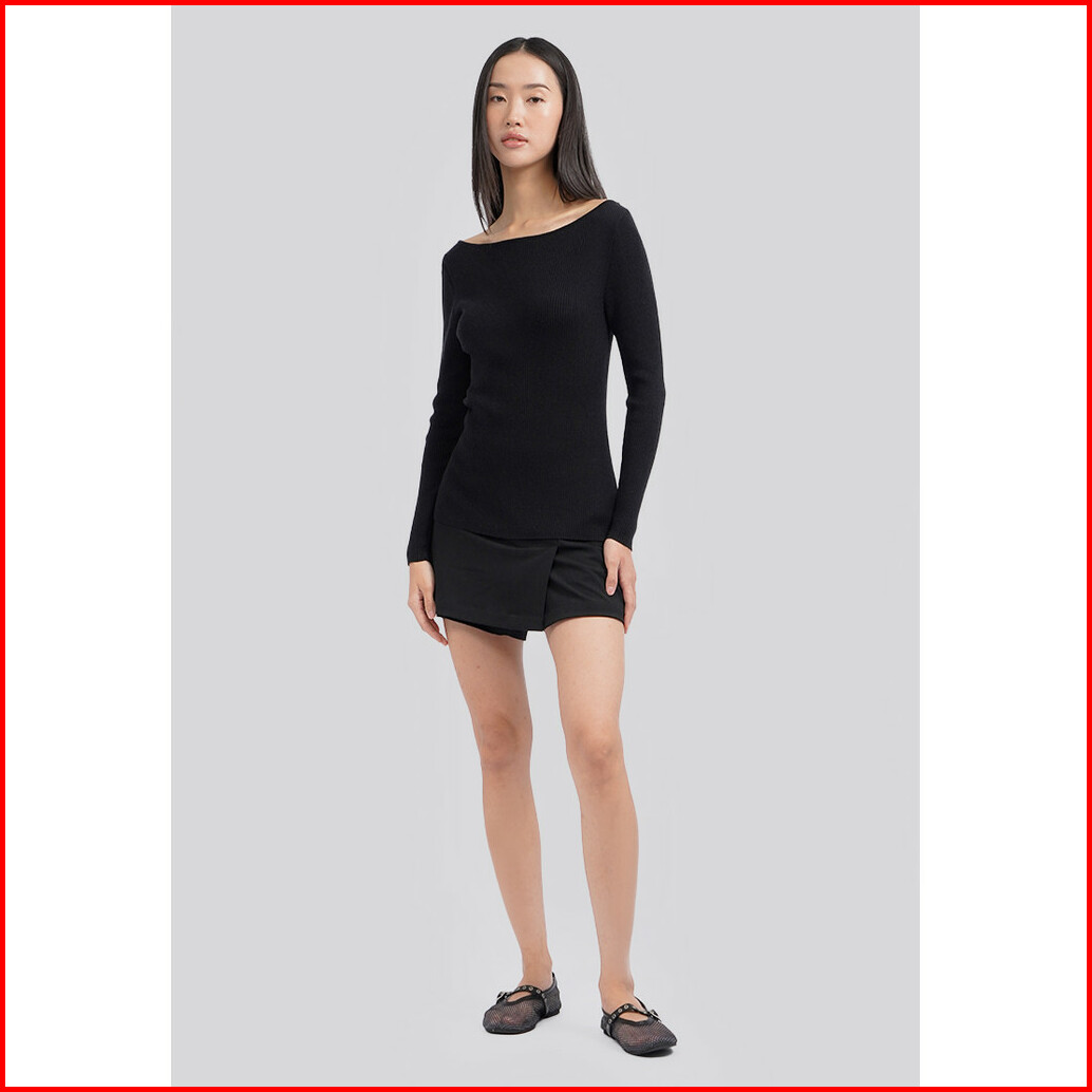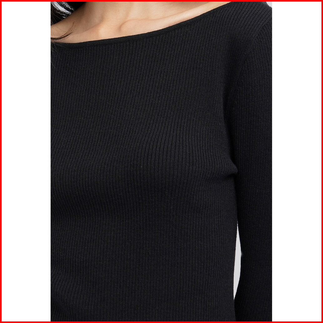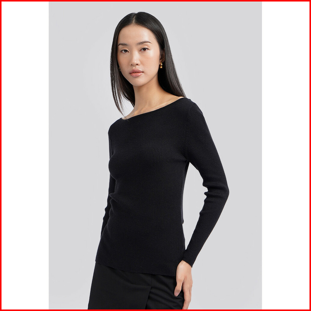 Executive Long Sleeve Boat Neck Rib Top Black