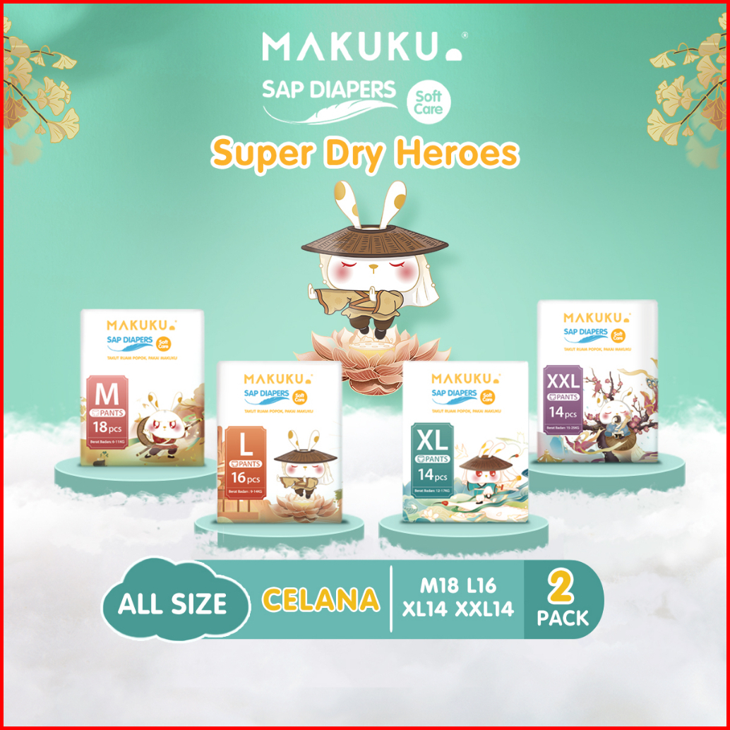 2 Pack Makuku Sap Diapers Soft Care Pants Ukuran Nb-s M L Xl Xxl Popok Bayi Anti Gumpal Super Dry
