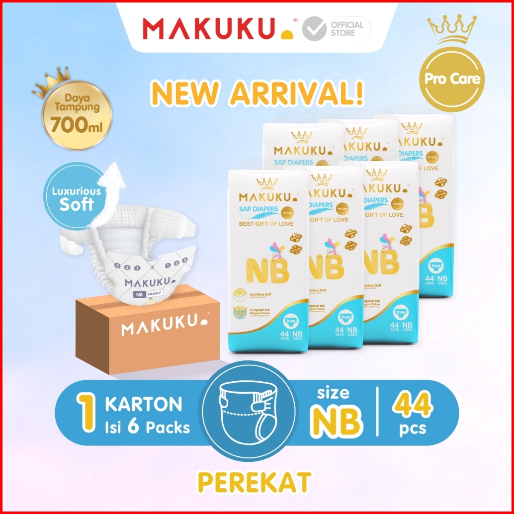 6 Pack Karton Makuku Sap Diapers Pro Care Tape Nb44 Popok Bayi Tipis Sap Anti Gumpal Cepat Kering Sekali Pakai Perlengka