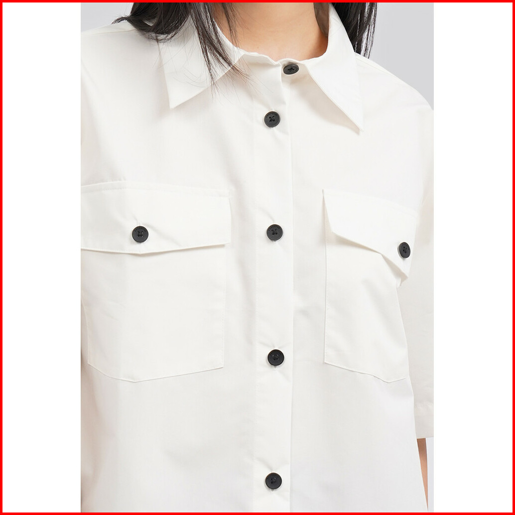 Executive Short Sleeve Boxy Shirt With Contrast Button Off White