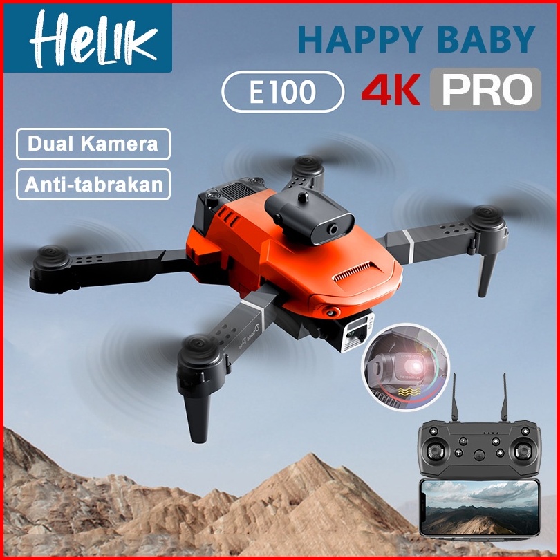Drone E100 Pro K6 Dengan Dual Kamera 4k Hd Fpv Wifi Profesional Dilipat Drone Real Anti Tabrakan Mainan Quadcopter Anak